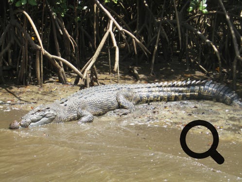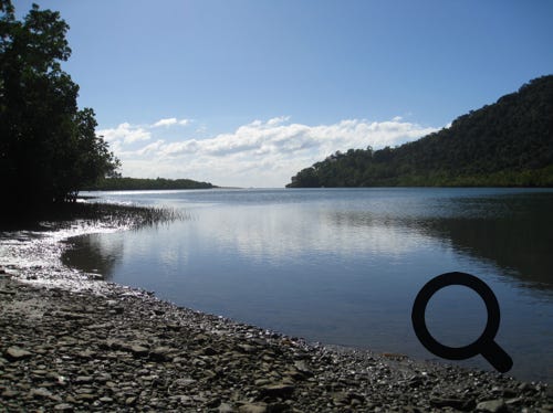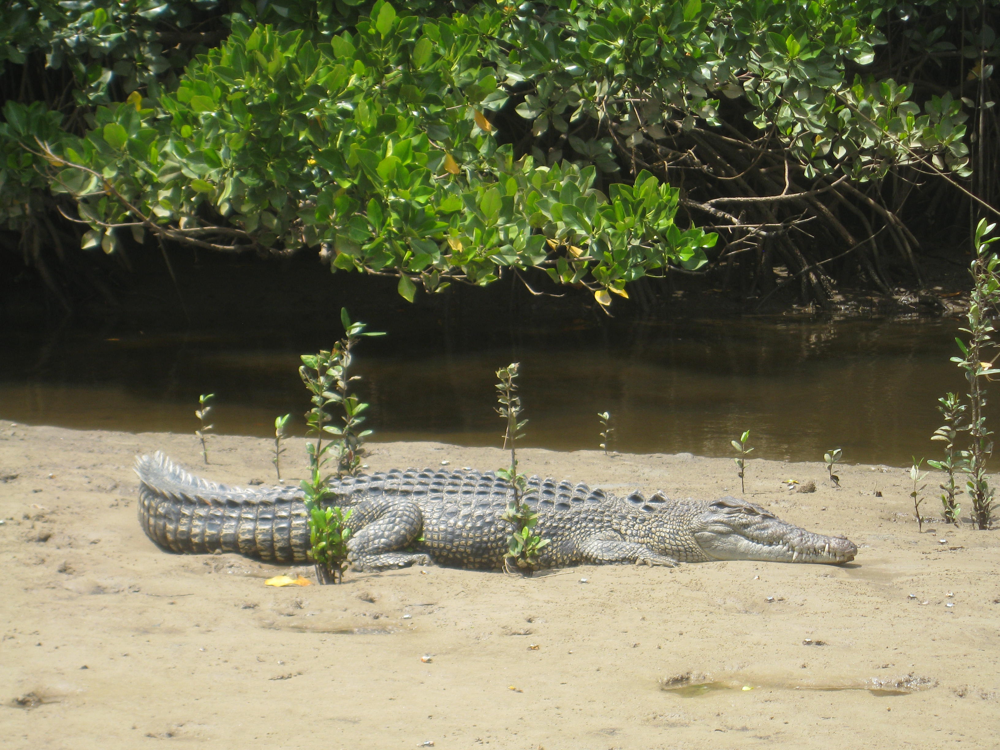 The Bloomfield River (Queensland) and some crocodiles on the river banks