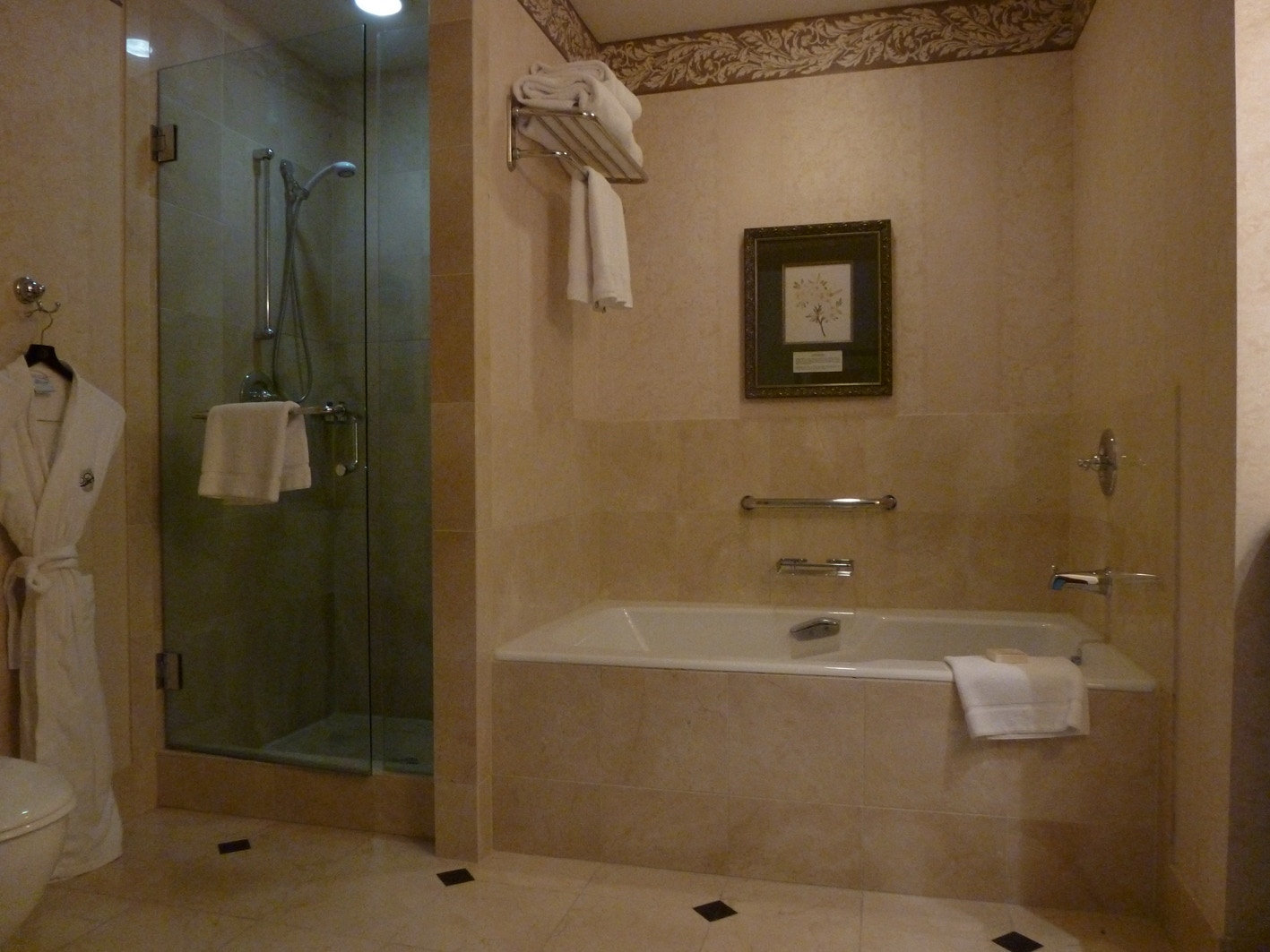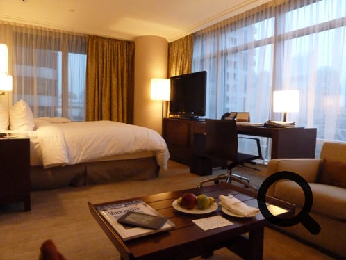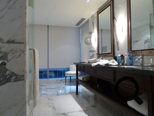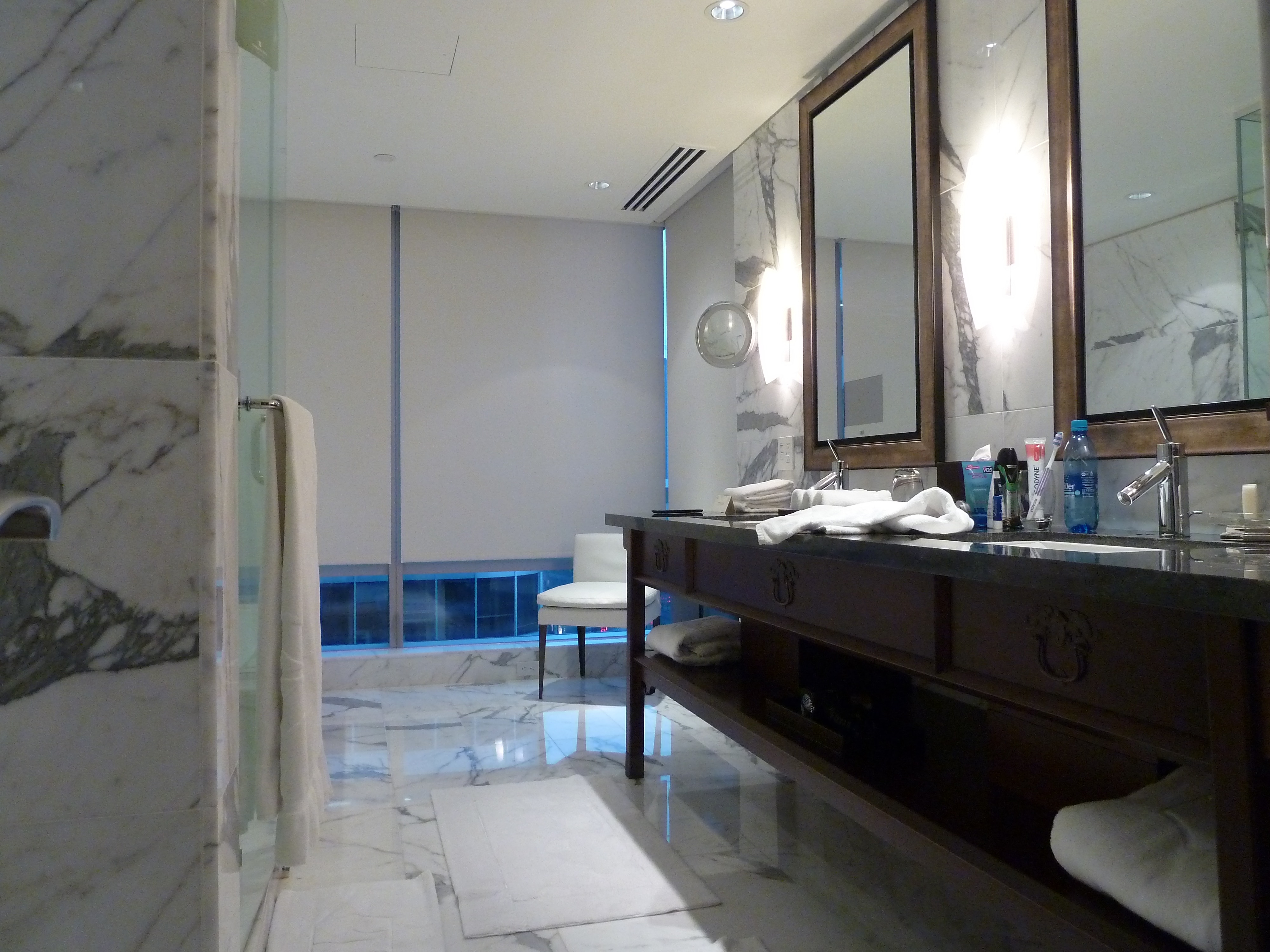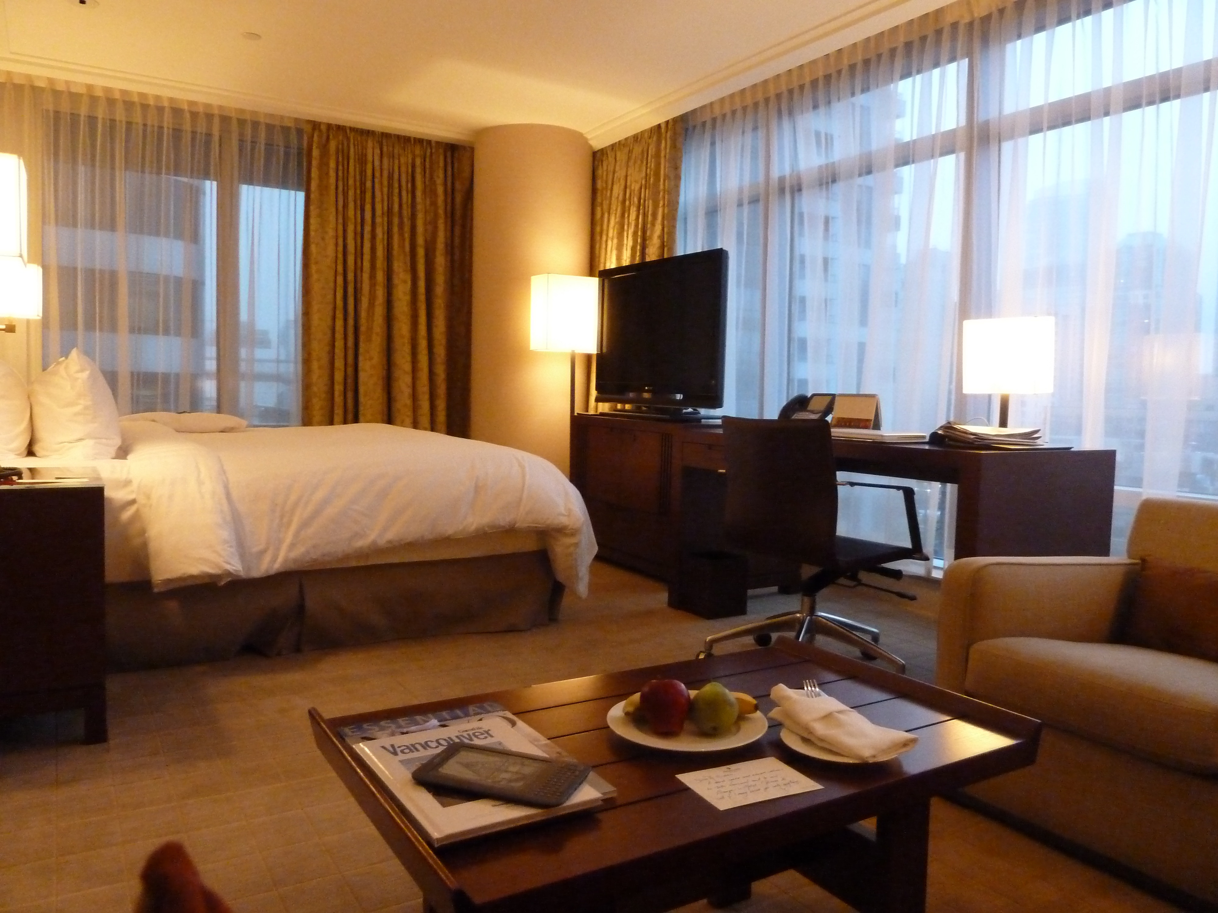 The really excellent Shangri-La hotel, Vancouver, showing an executive room, bathroom and one of the two bars