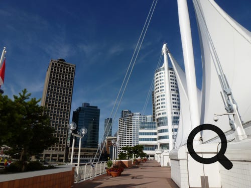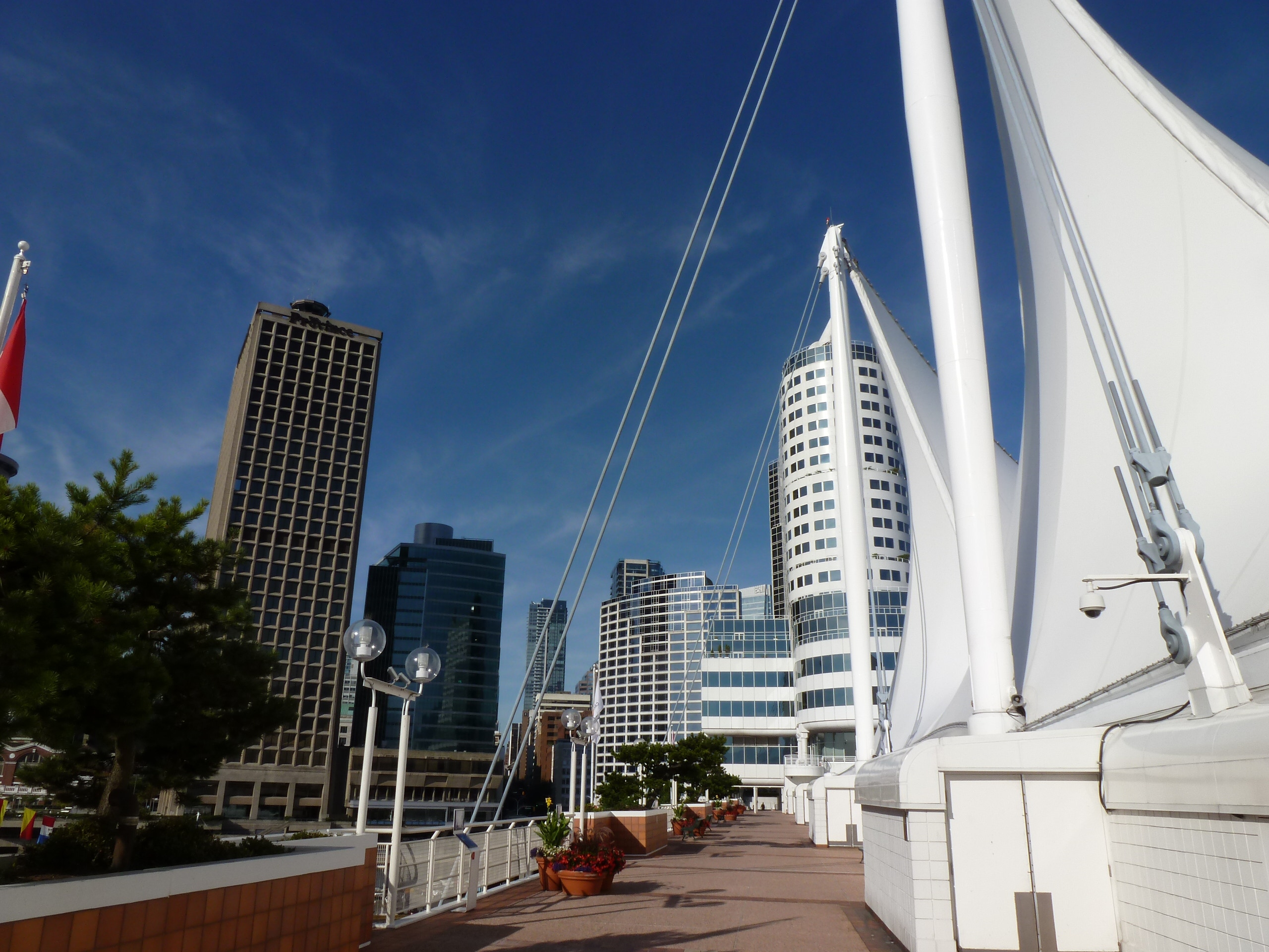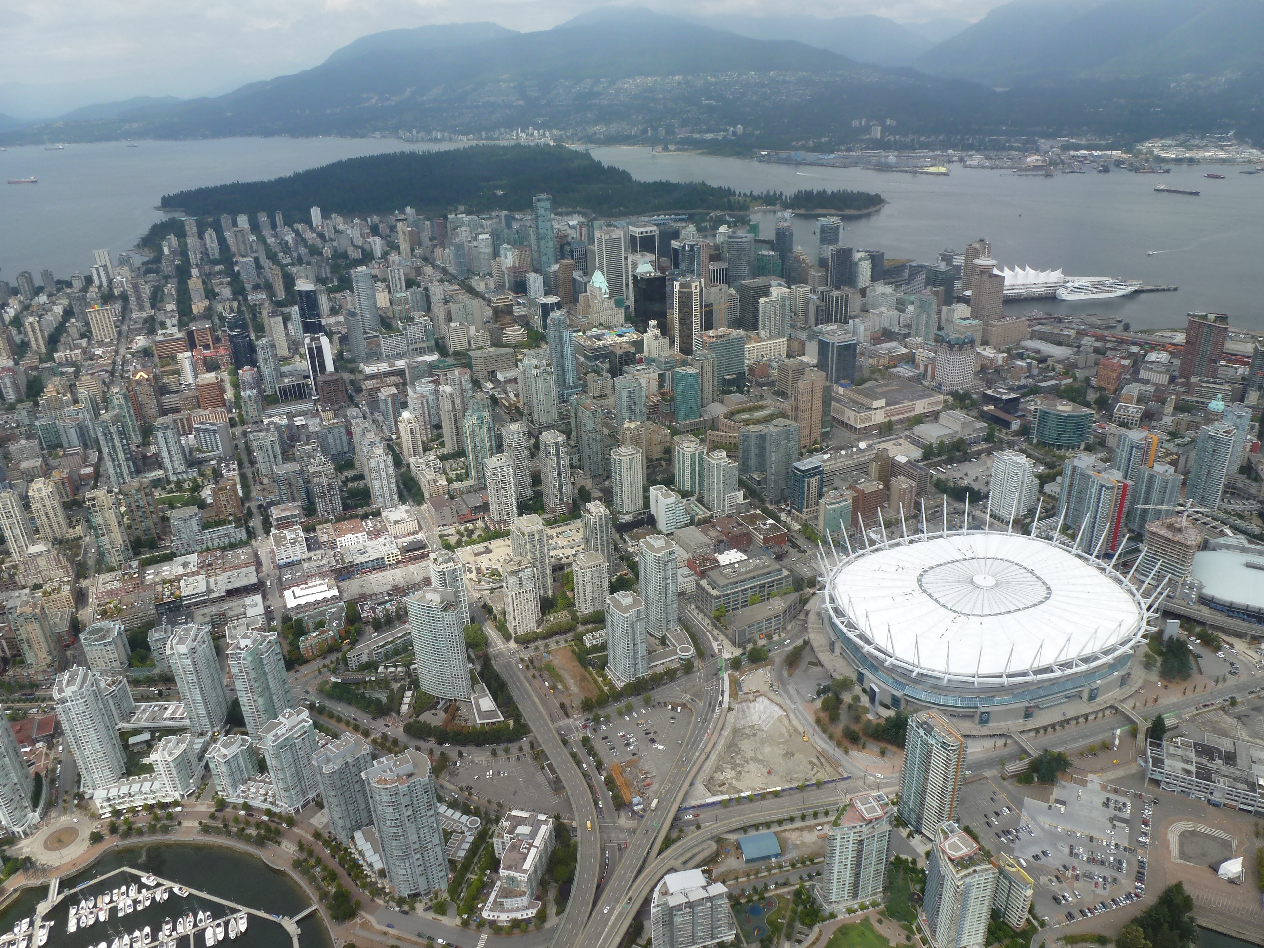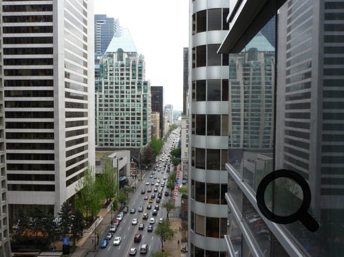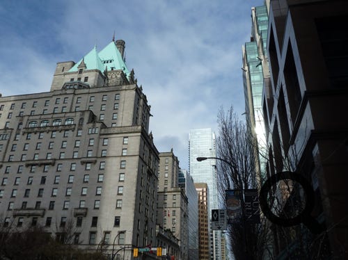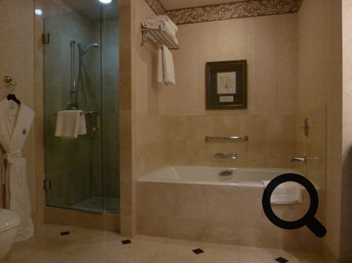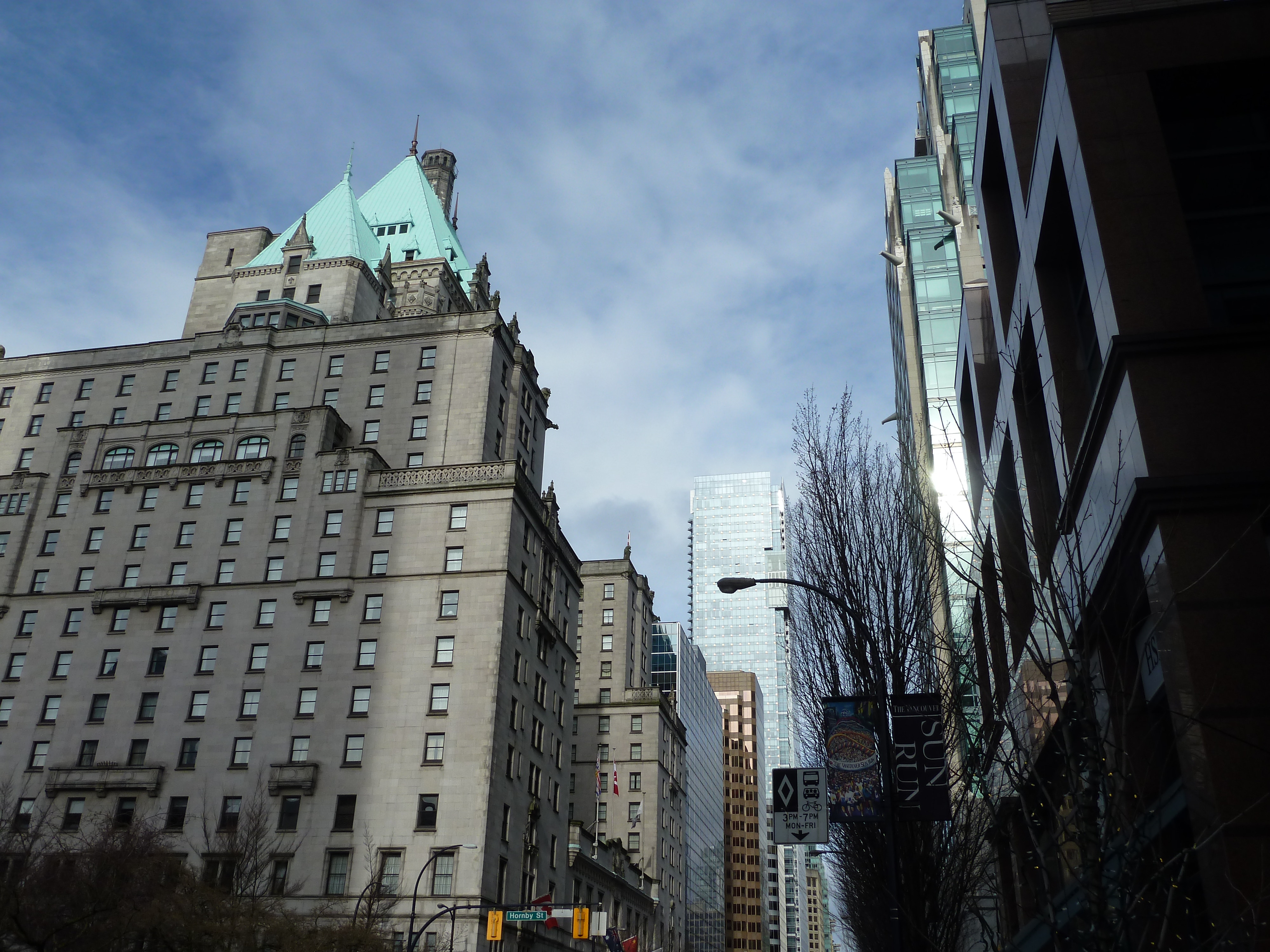 The really excellent Shangri-La hotel, Vancouver, showing an executive room, bathroom and one of the two bars