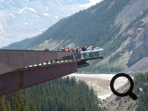 The Columbia Icefield Skywalk, overlooking the Sunwapta Valley, 918 feet below