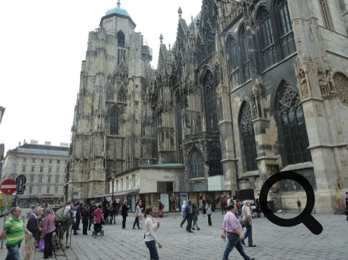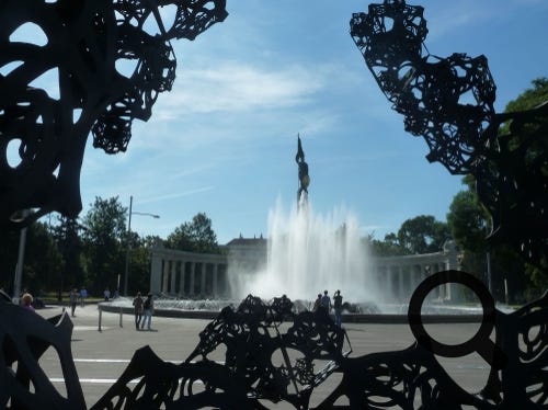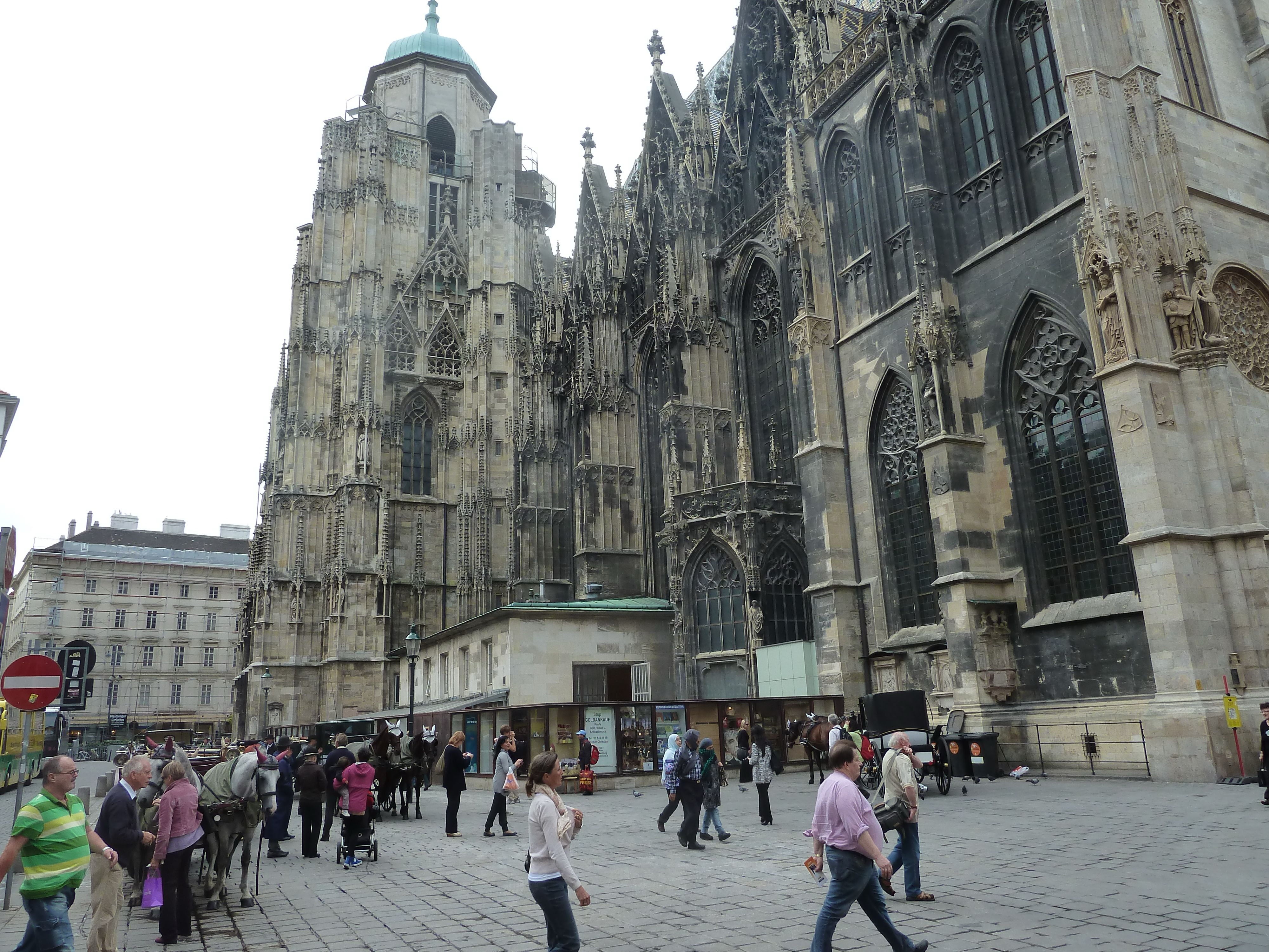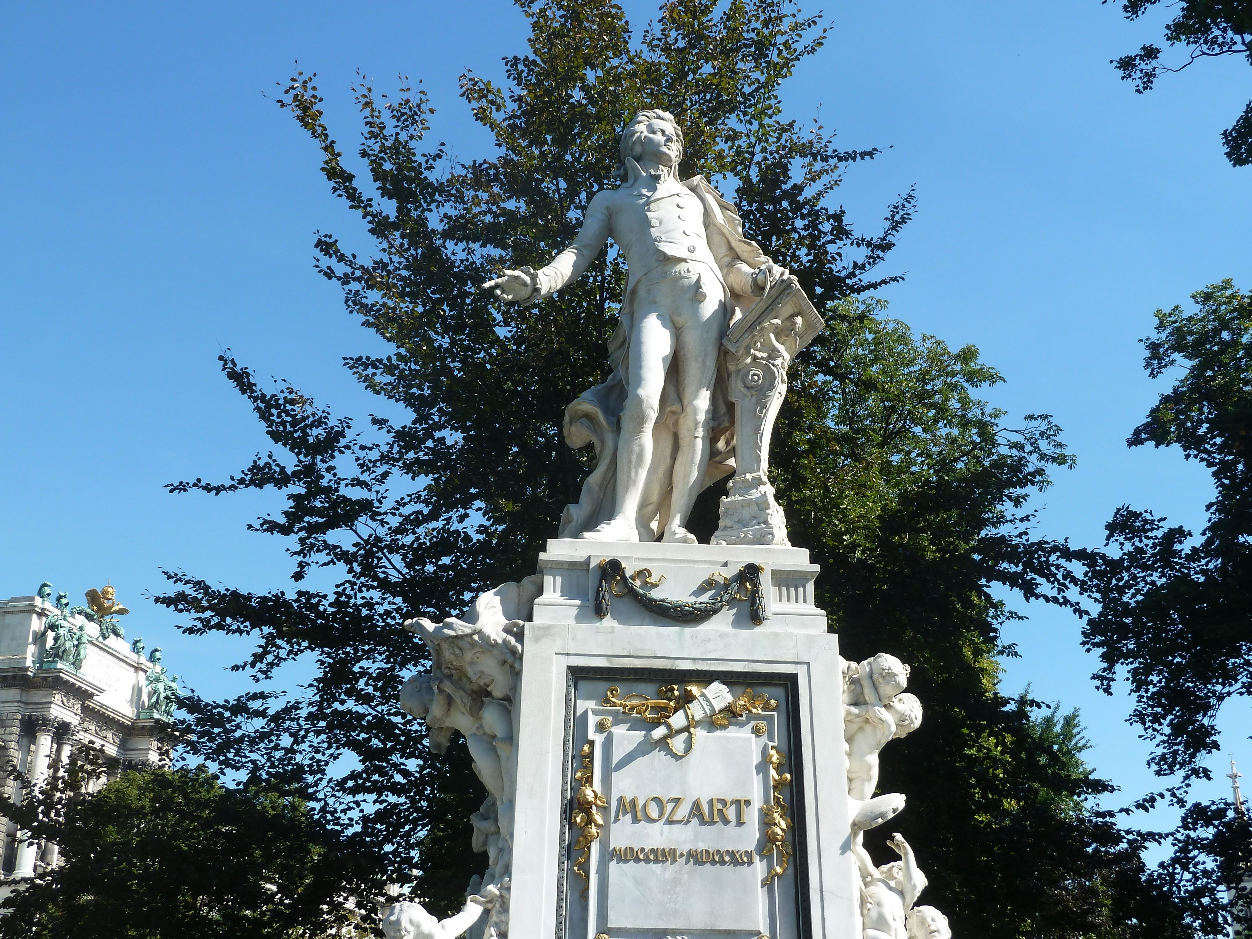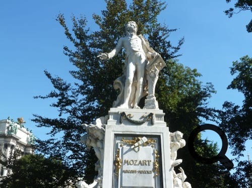 Vienna, Austria, Mozart’s statue, sound sculpture, cathedral and Johann Wolfgang Goethe statue