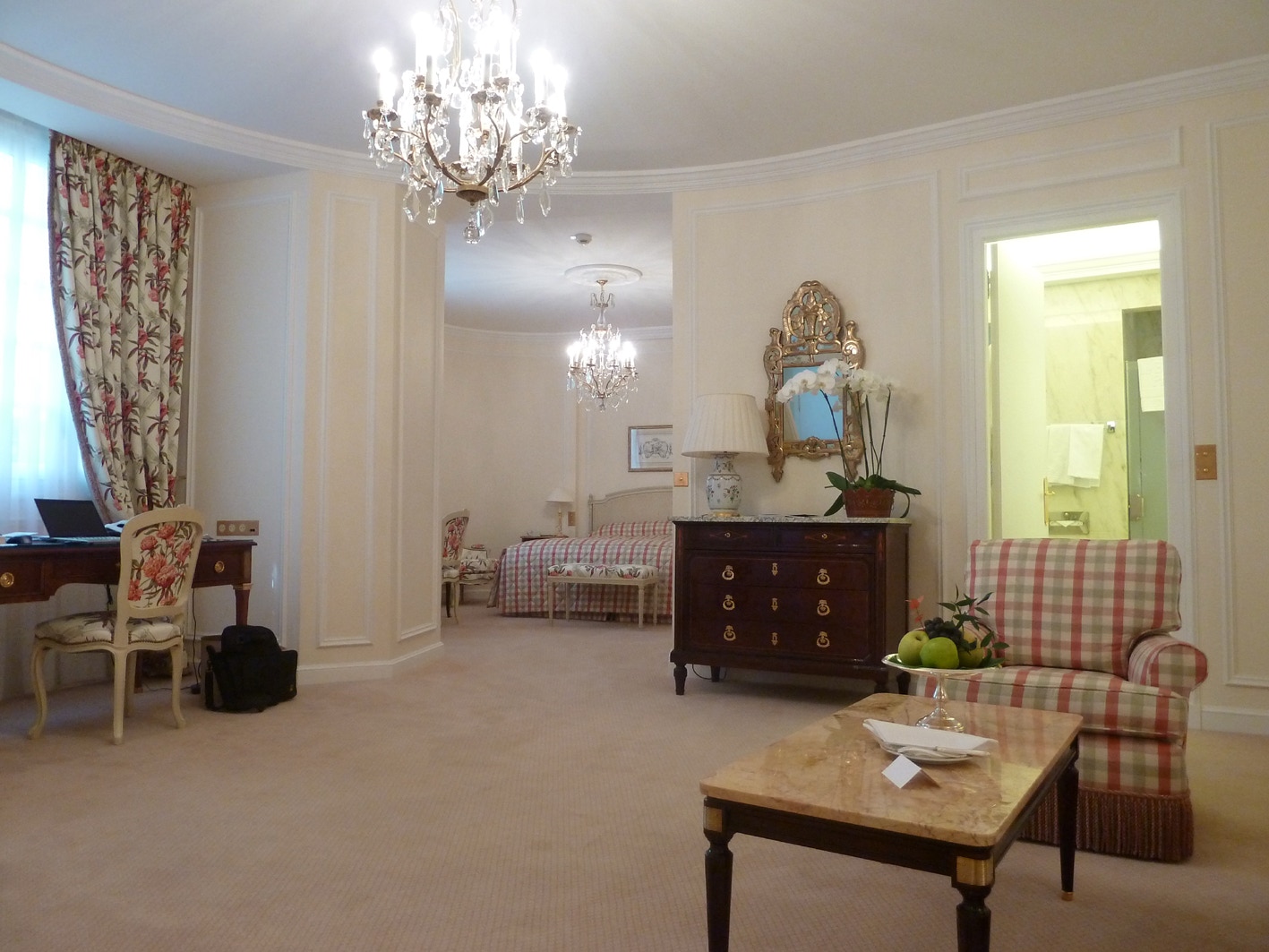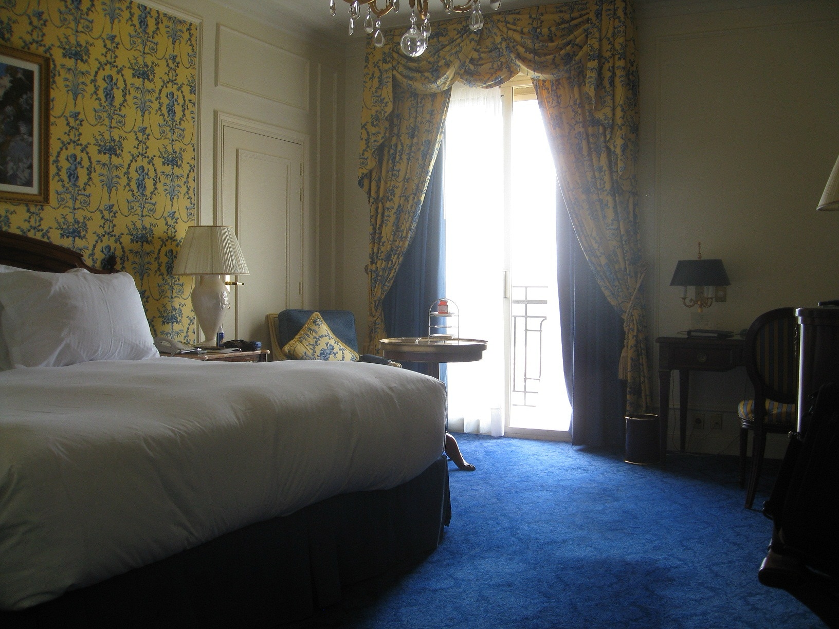 Hotel de Paris, Monte Carlo, Monaco, the room, view from the room and hotel interior