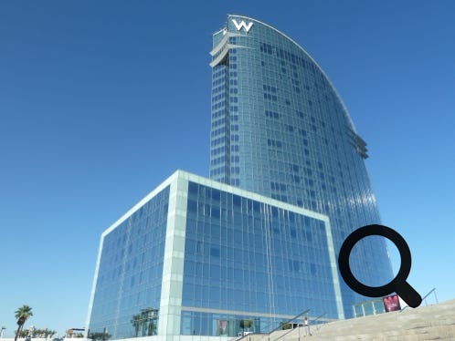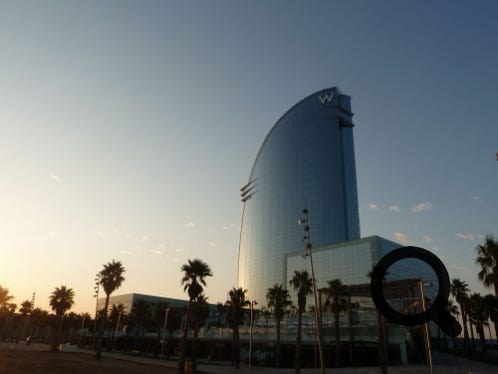 The excellent ‘W’ Hotel in Barcelona. Friendly, helpful people and really good food