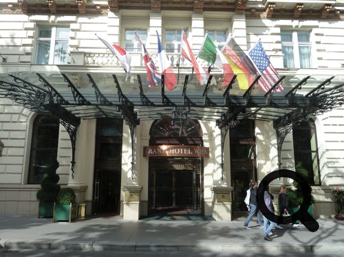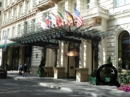 Grand Hotel, Vienna, Austria, entrance, room and bar area. An excellent hotel
