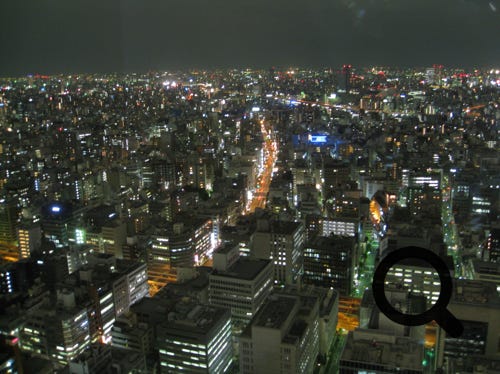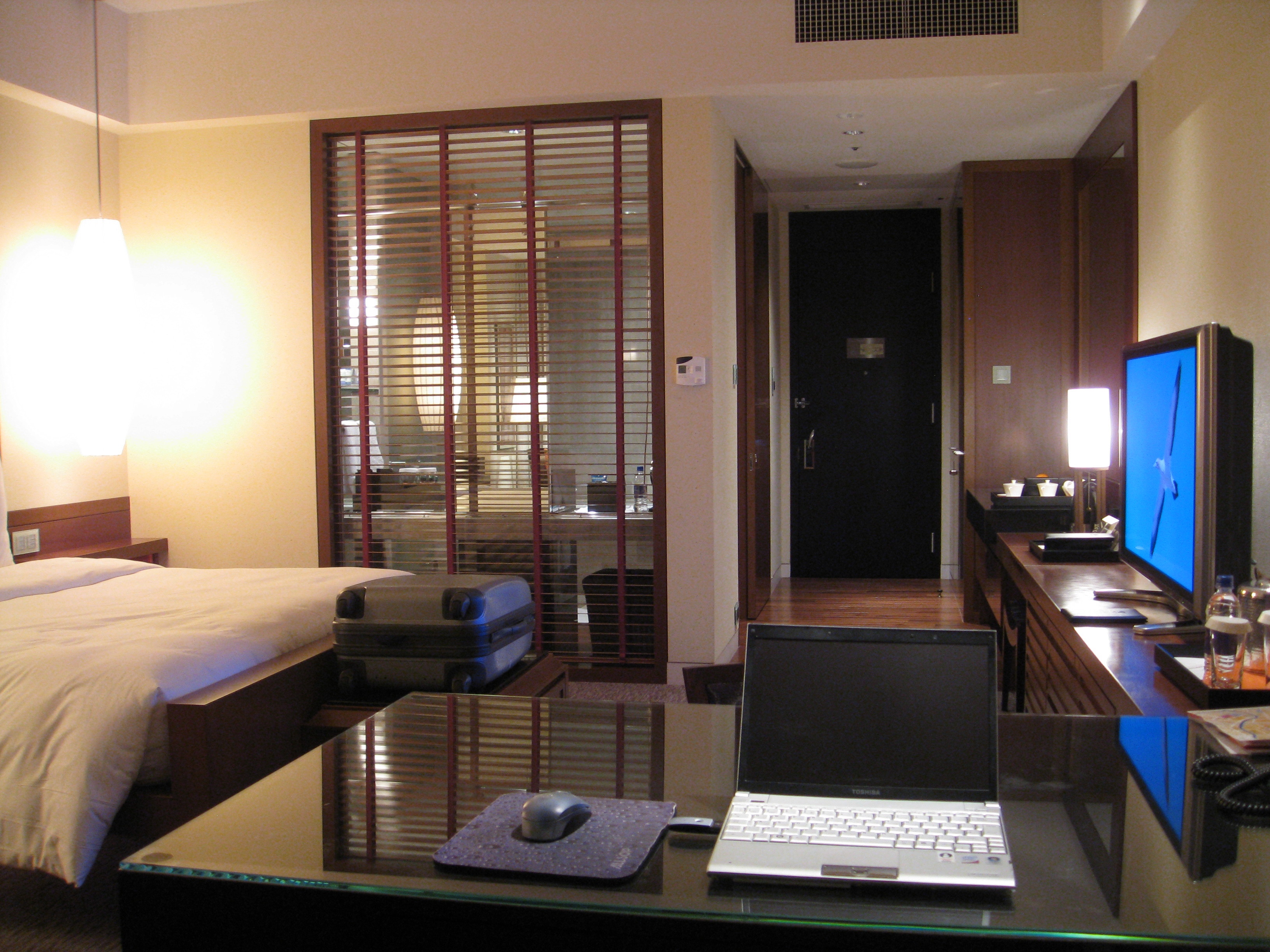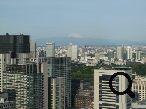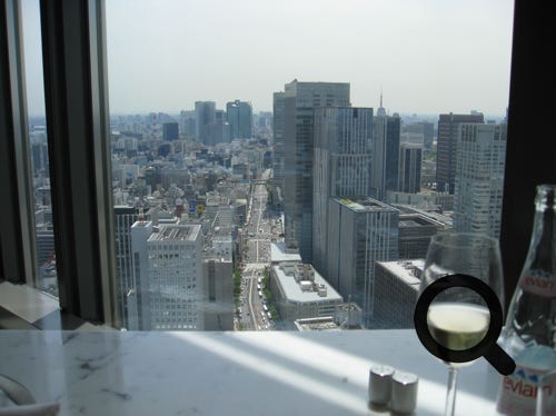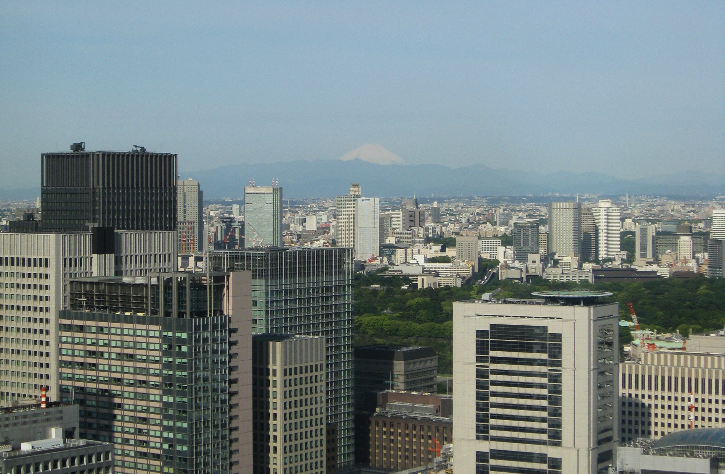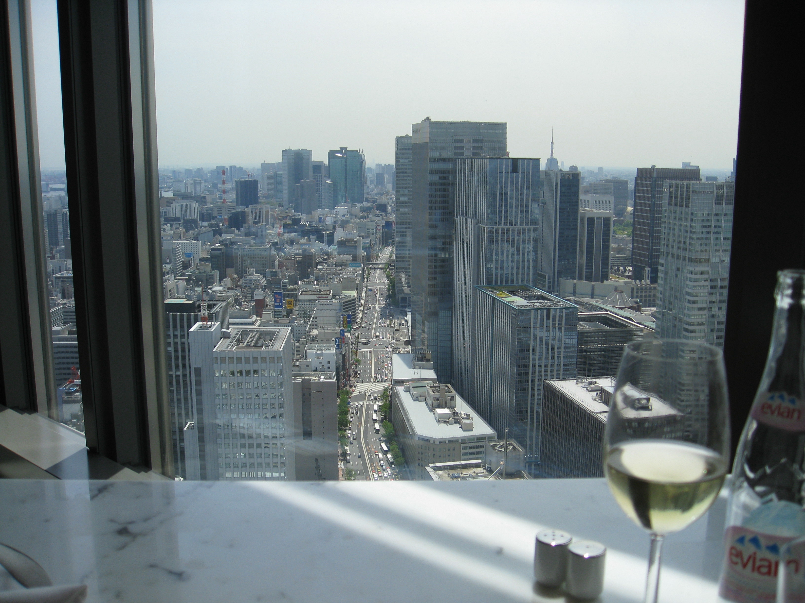 Mandarin Oriental hotel, Tokyo, room, view from room at night, Mount Fuji in the distance and the view from the bar