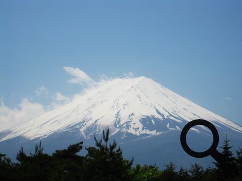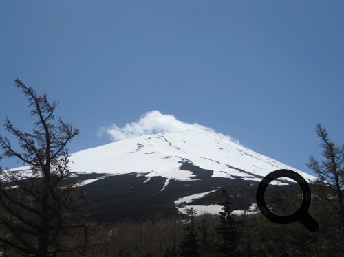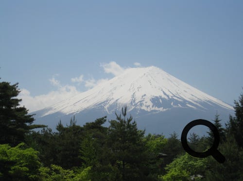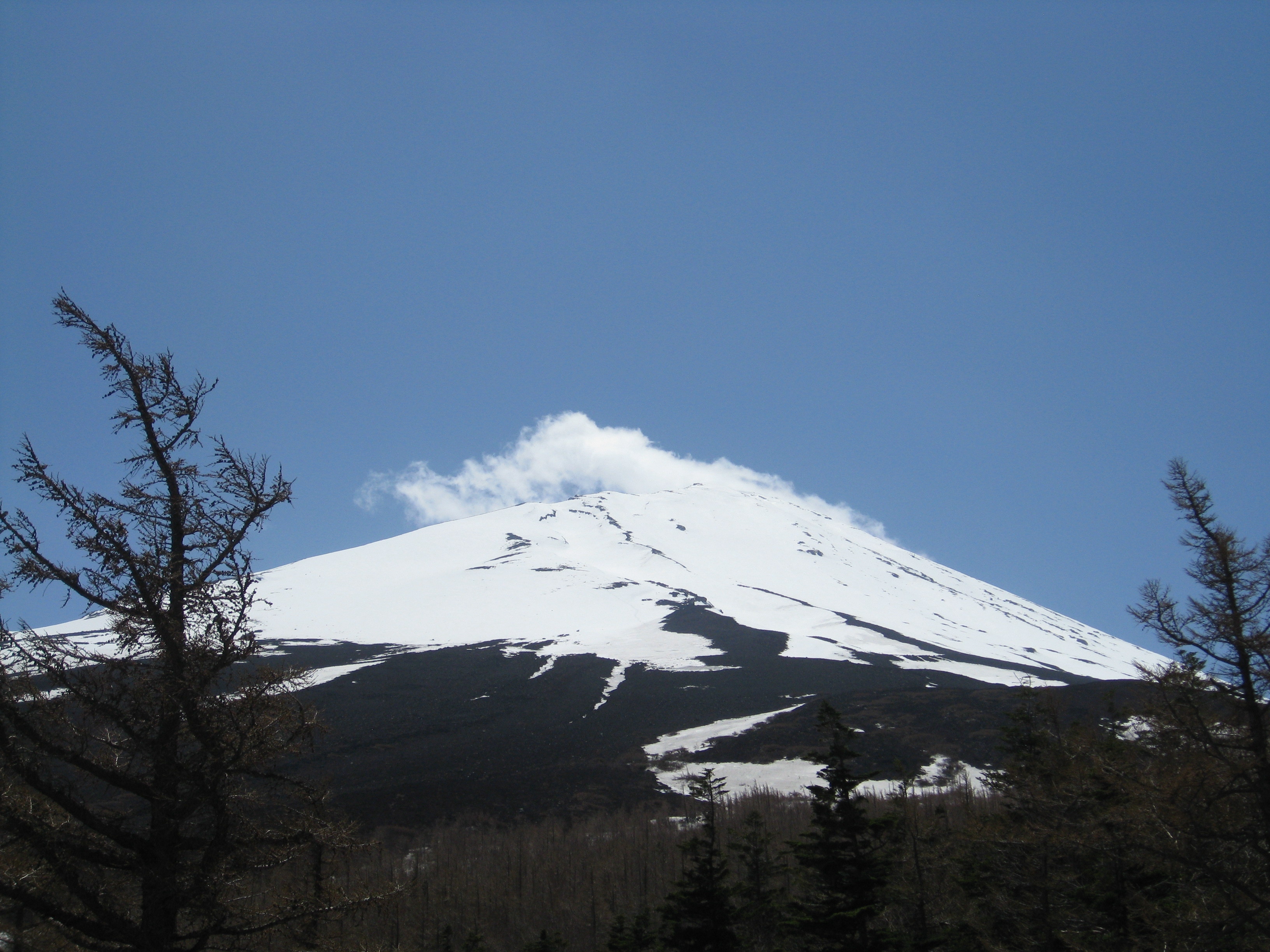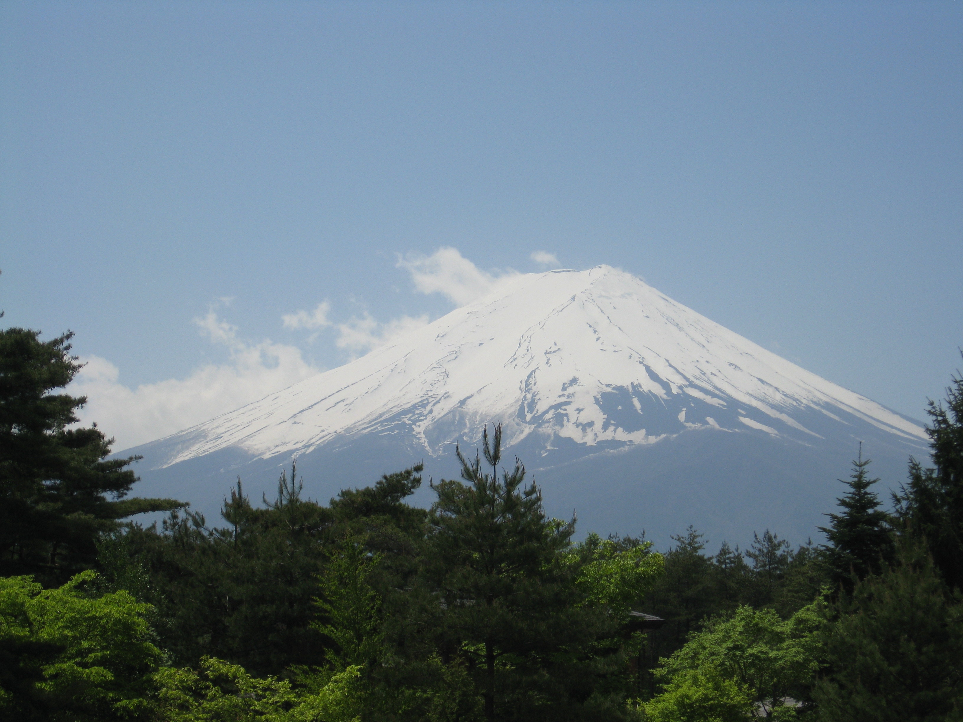 Mount Fuji. Beautiful from a distance with snow blowing off the peak and beautiful, much closer, too