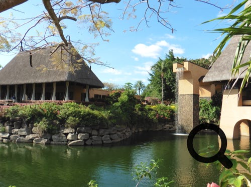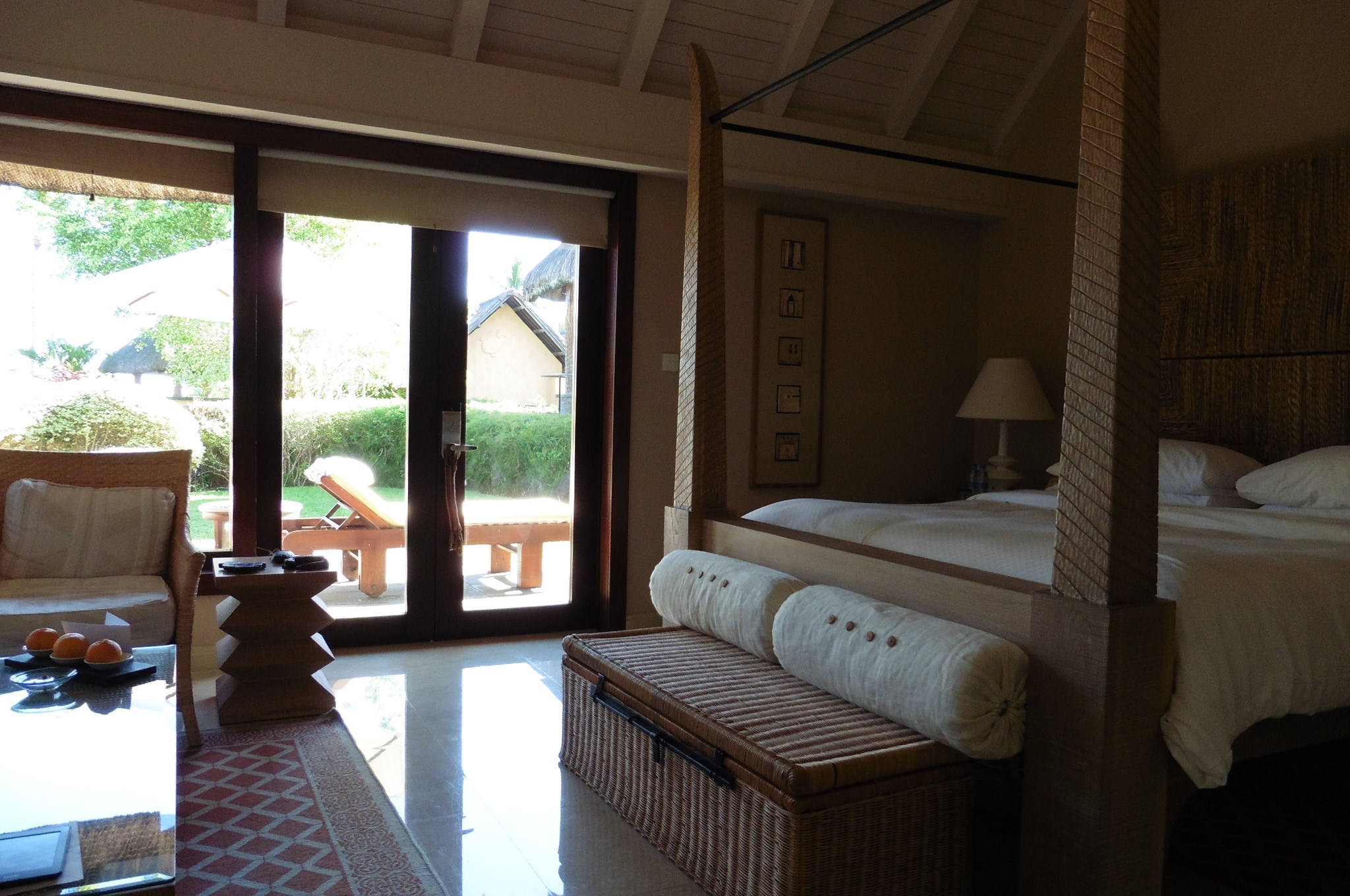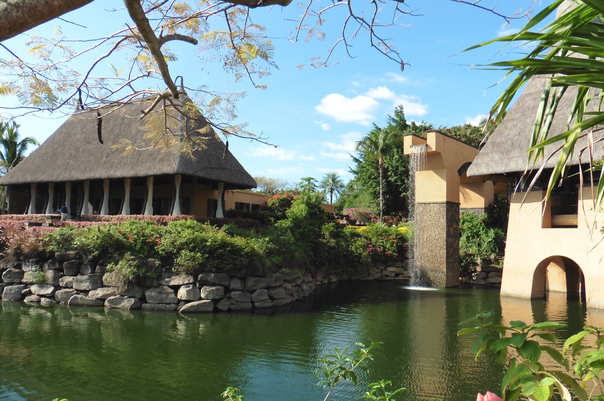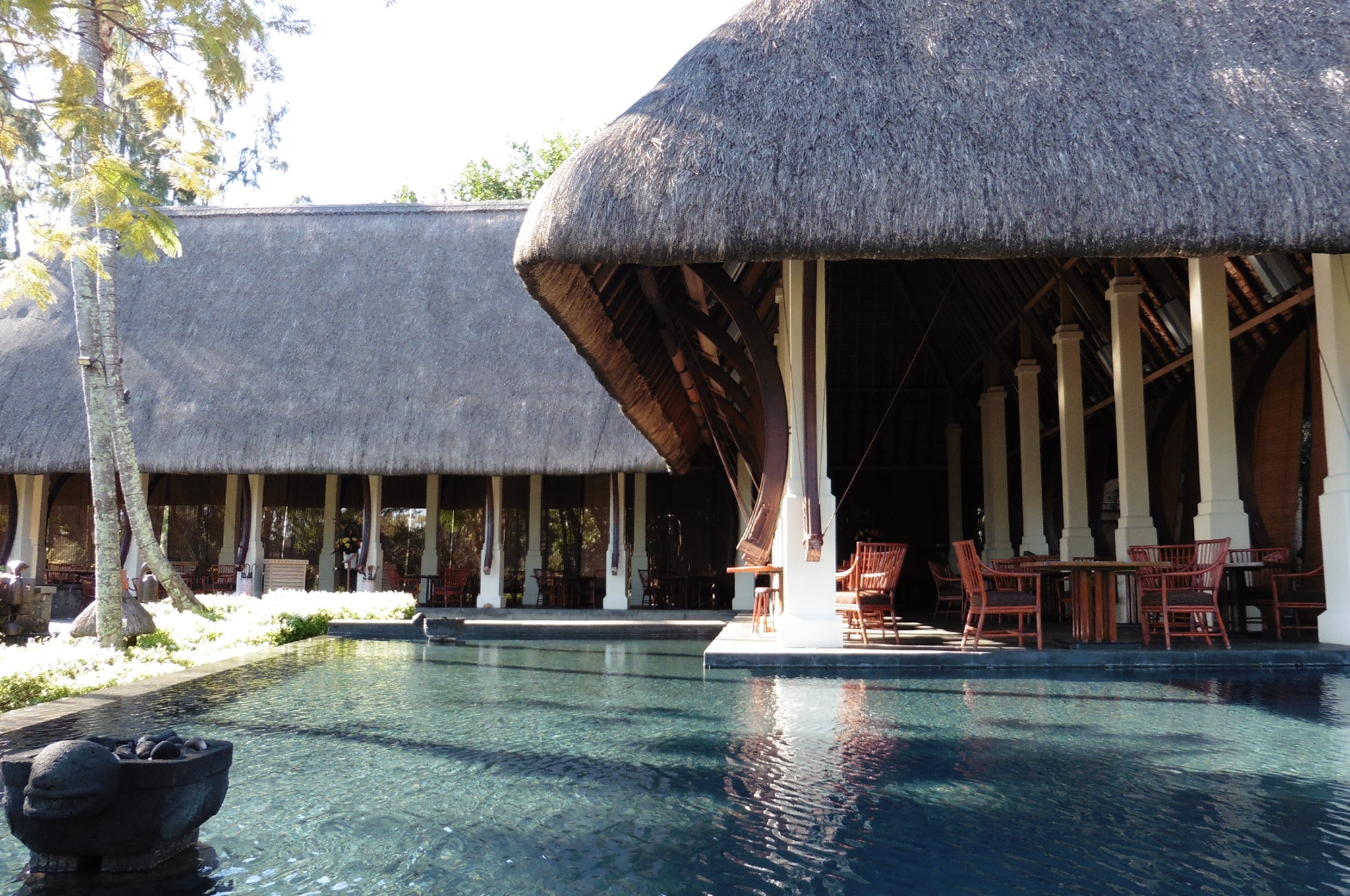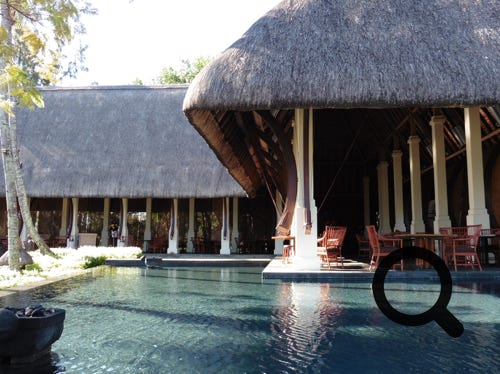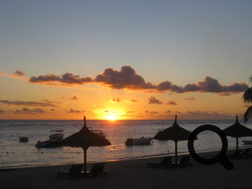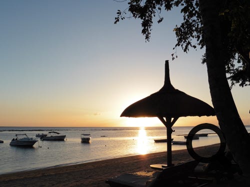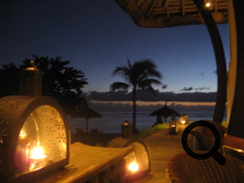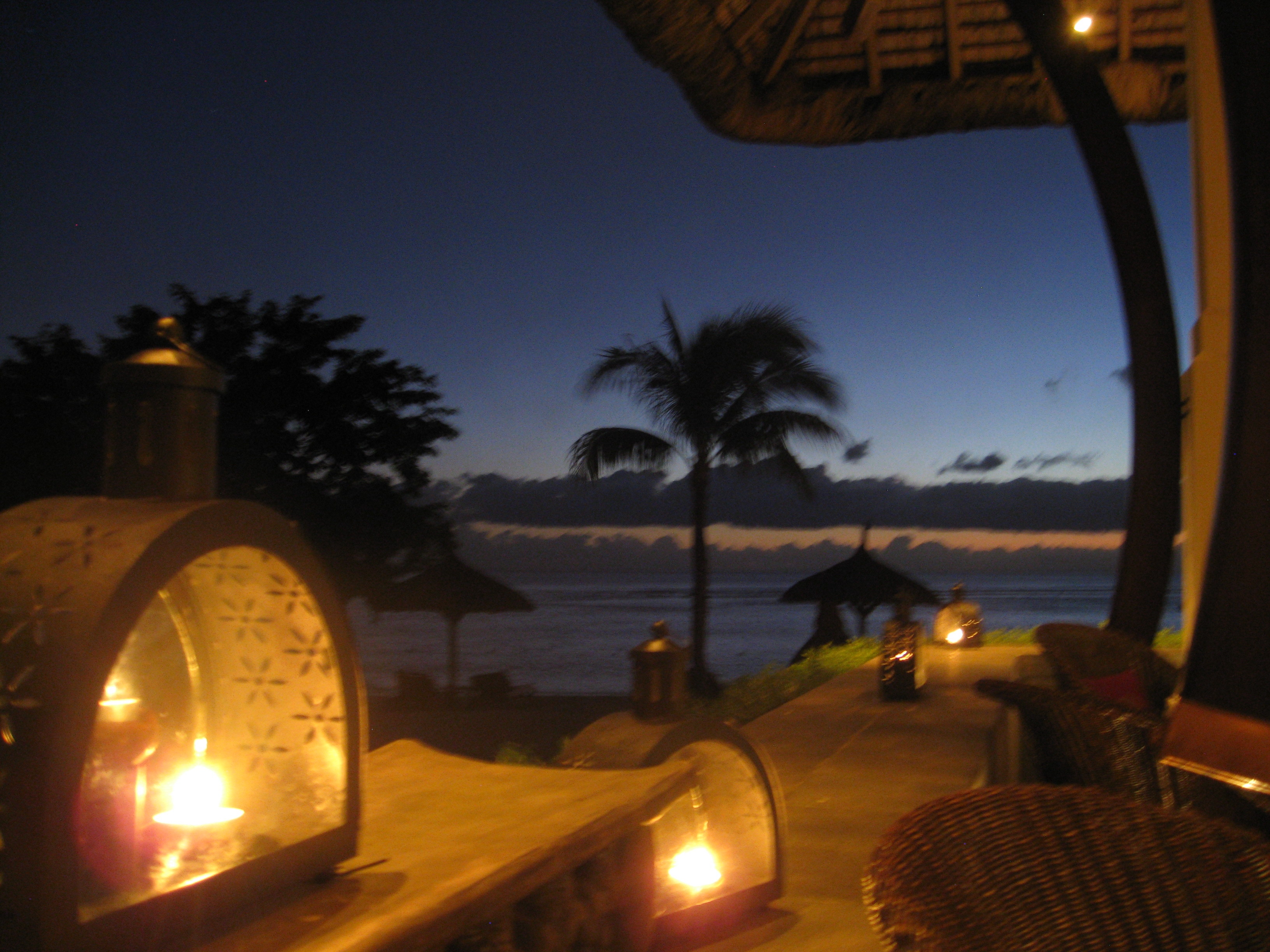 The truly wonderful Oberoi Hotel, Mauritius, the grounds, the restaurant, main buildings and in the bar, at sunset