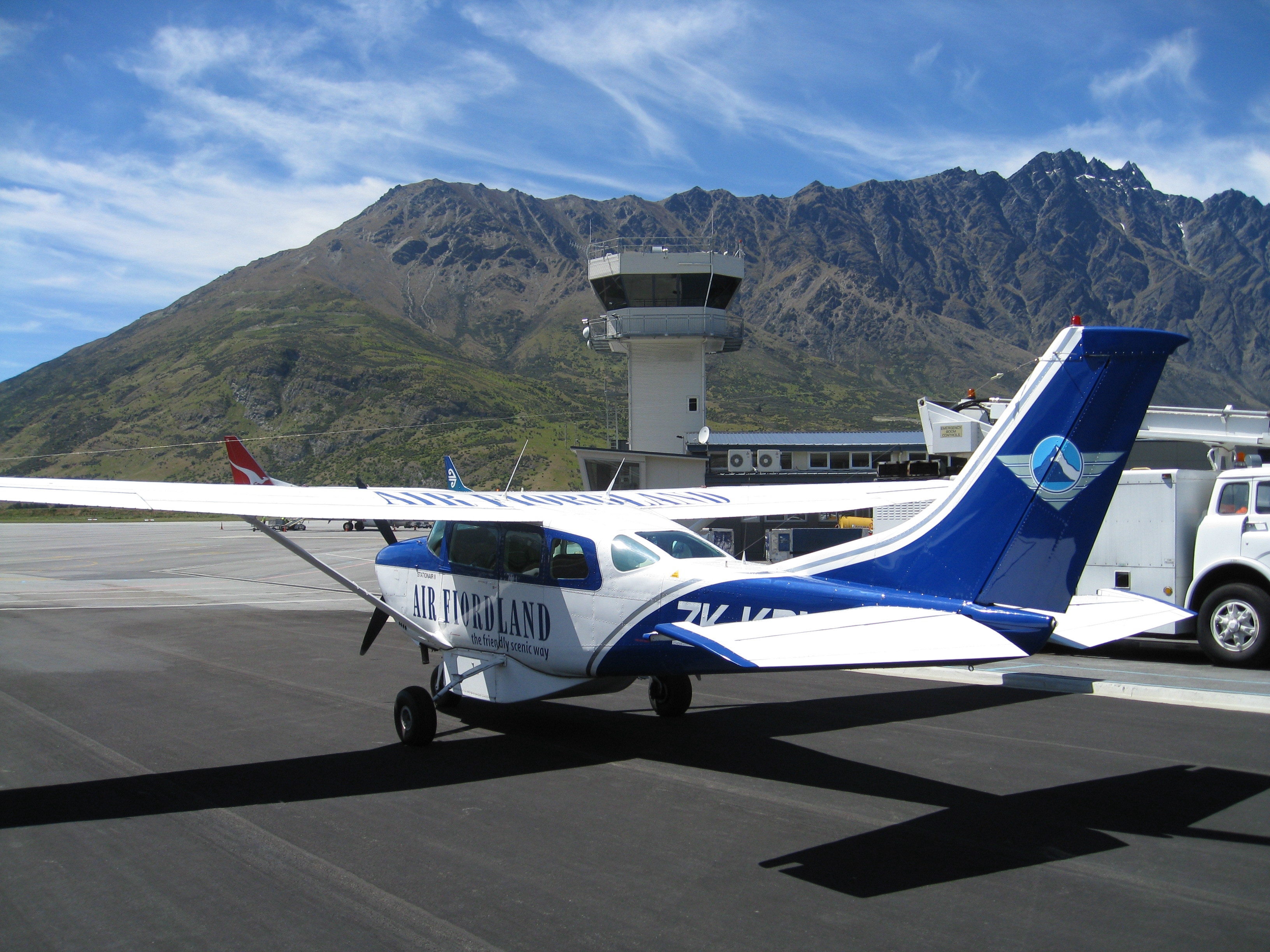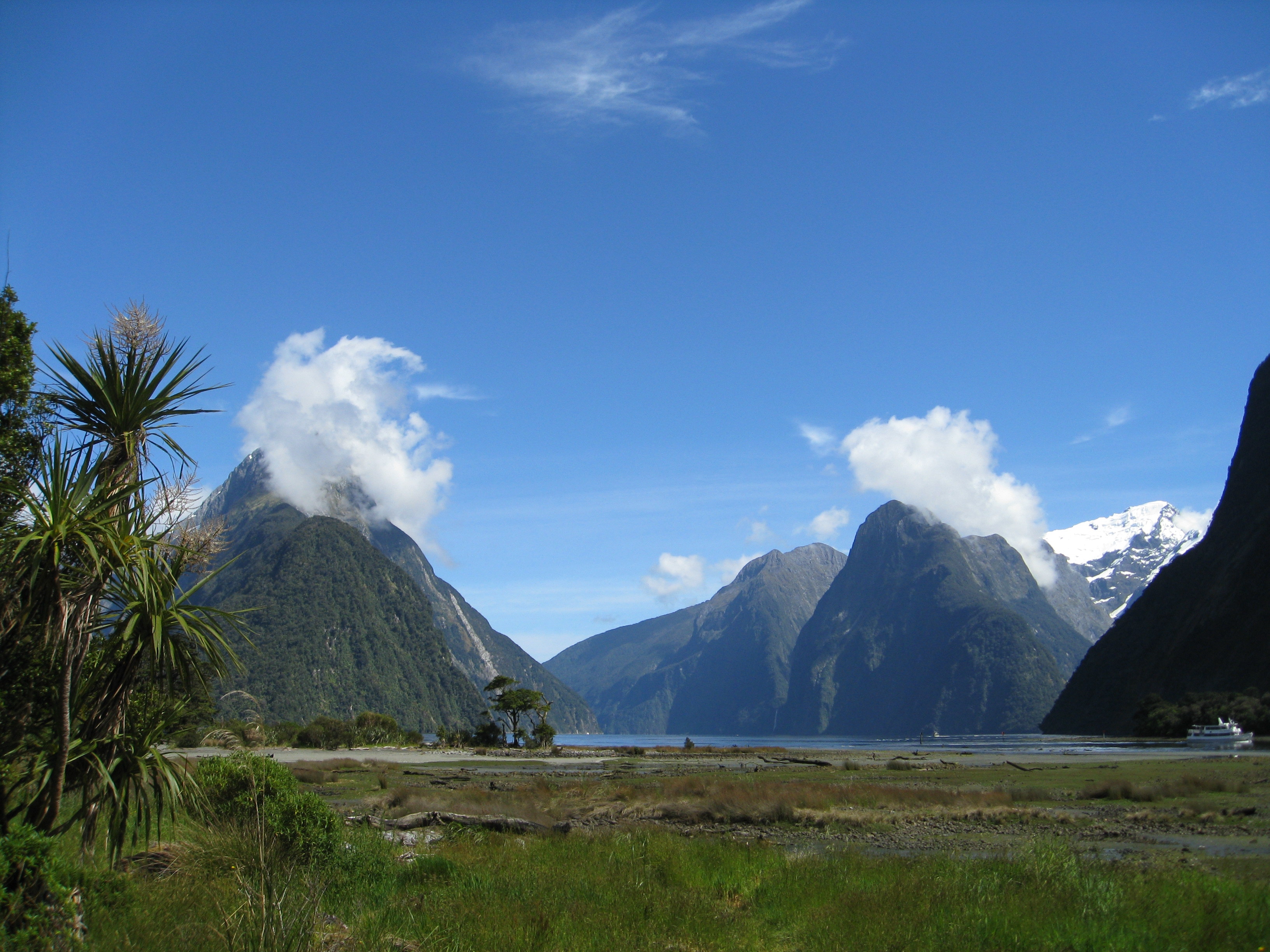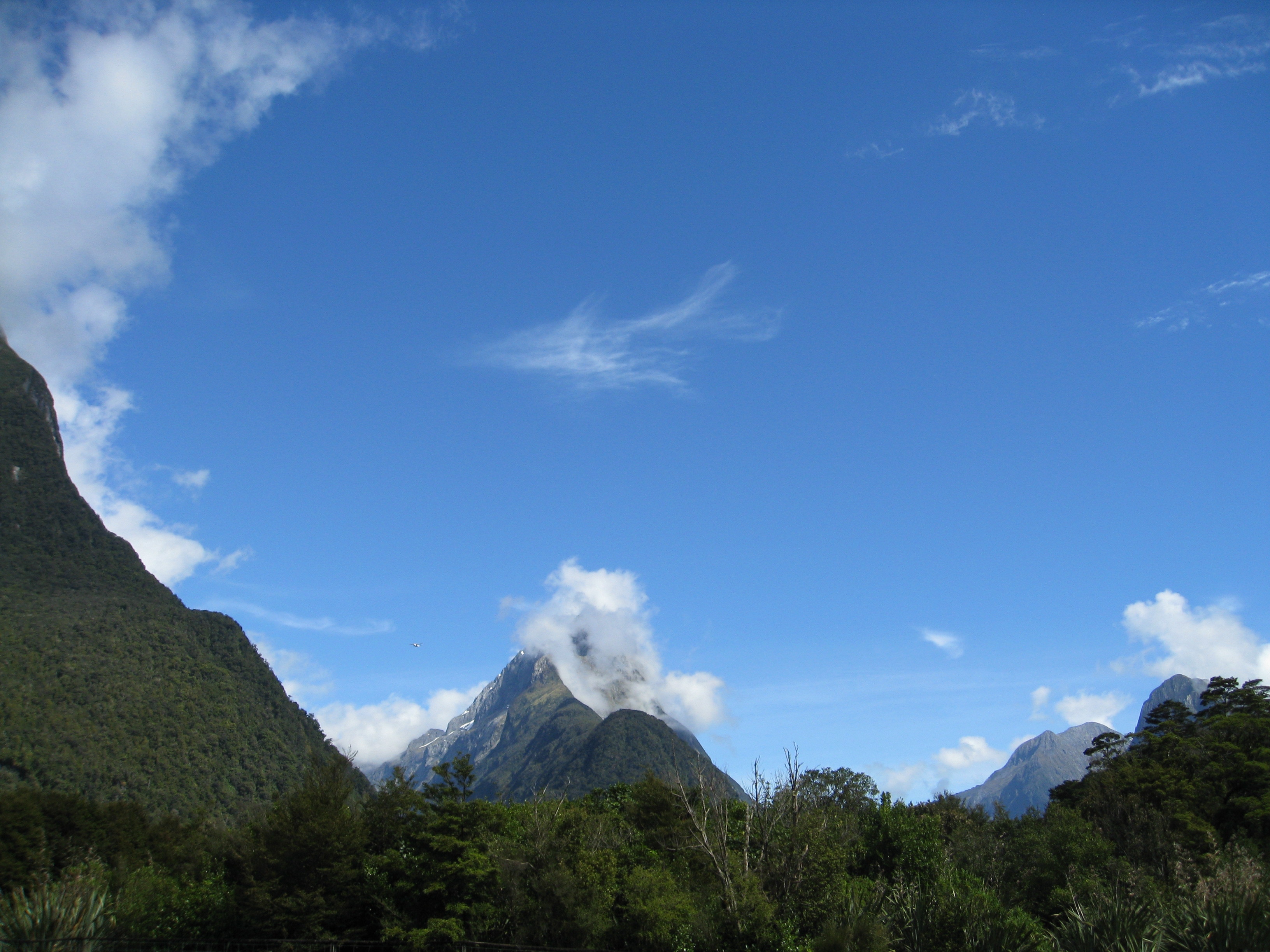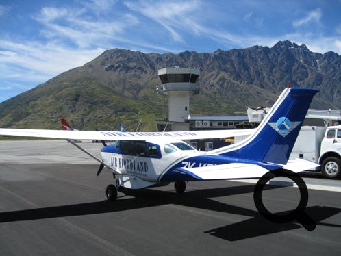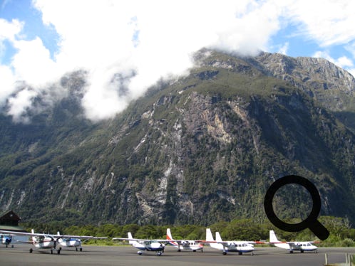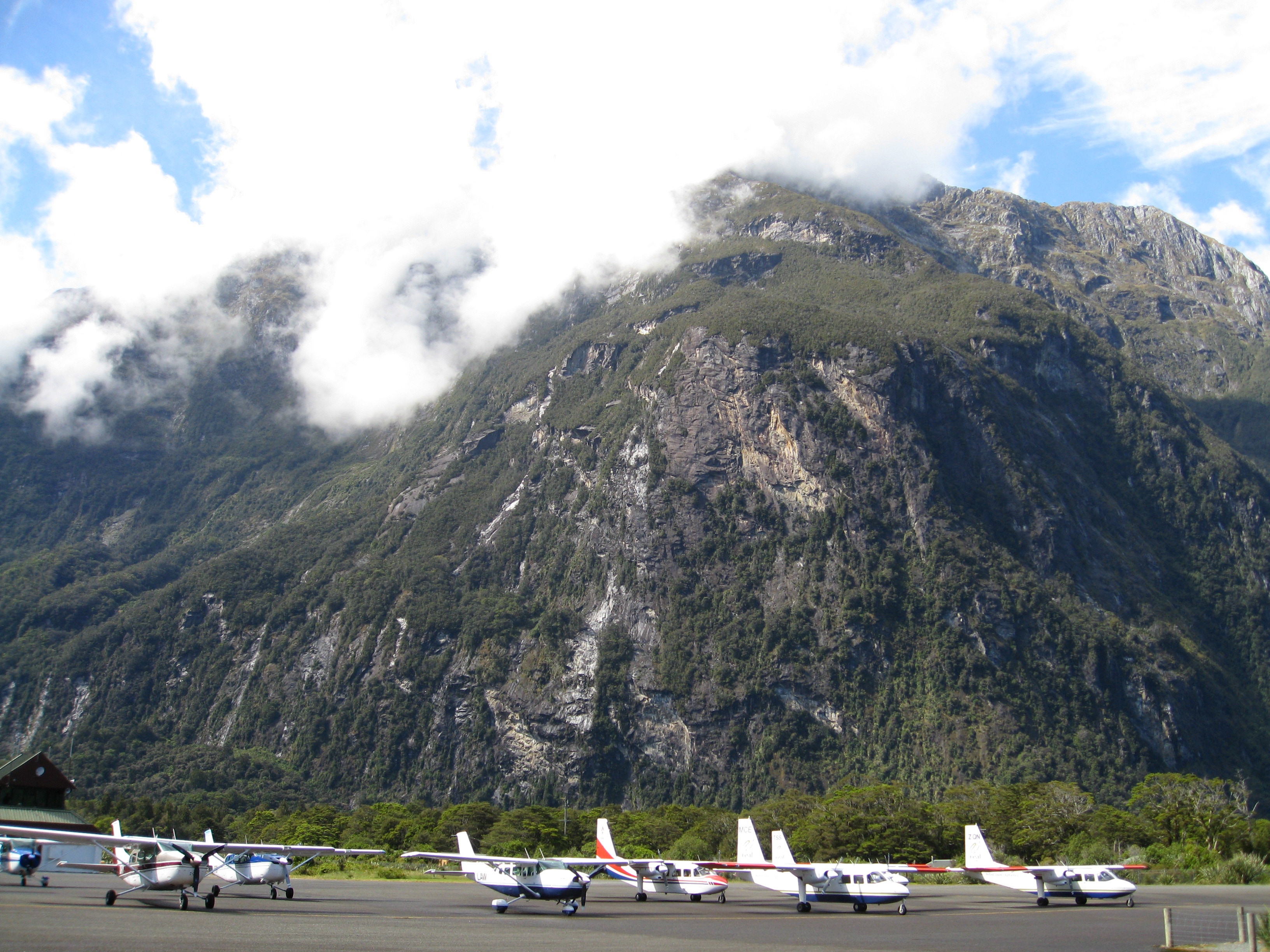 Landing in Milford Sound after a flight over the Southern Alps in a light aircraft, from Queenstown