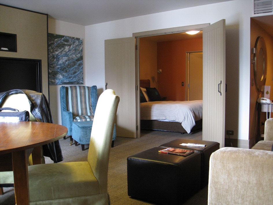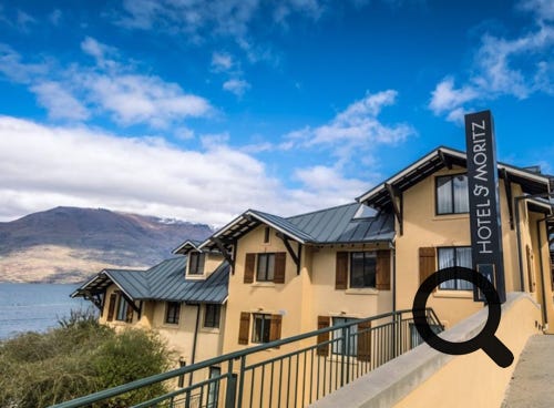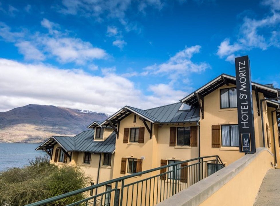 The really good St. Moritz Hotel, Queenstown, New Zealand, showing the hotel, a suite and the views from the room overlooking Lake Wakatipu