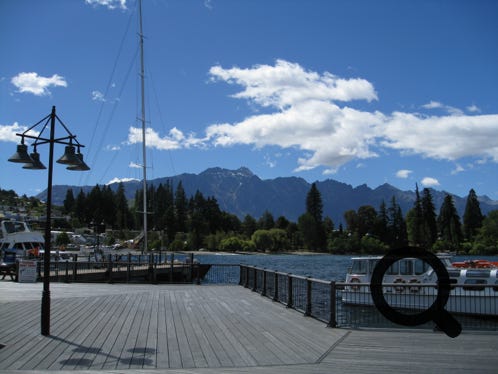 Queenstown on the south island of New Zealand. A lovely, relaxing town on the banks of Lake Wakatipu