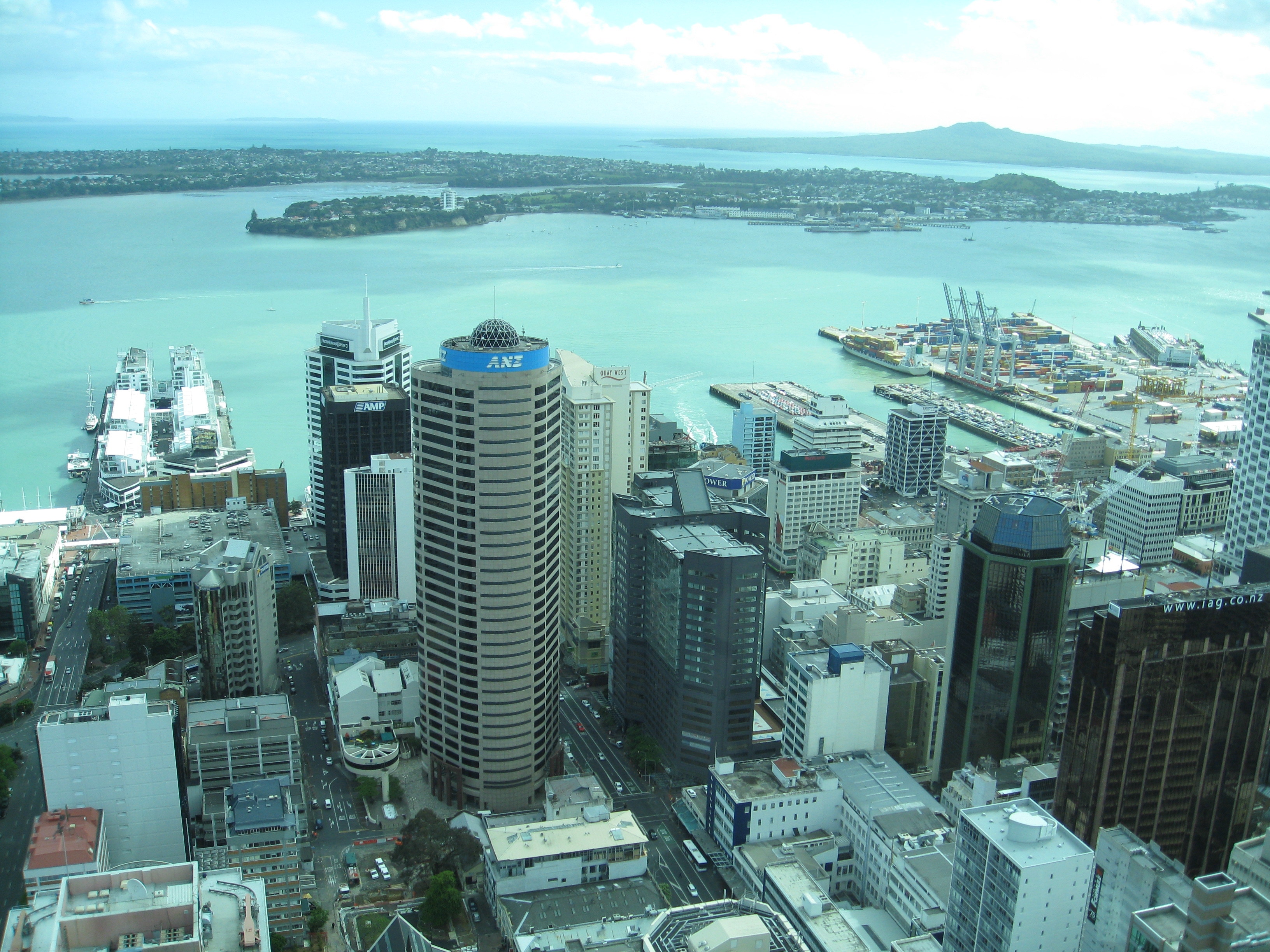 The city of Auckland, North Island. The city and the views from the Sky Tower