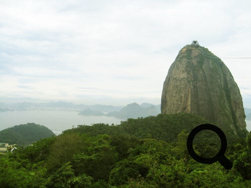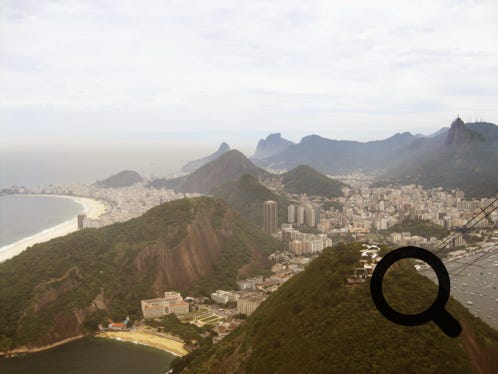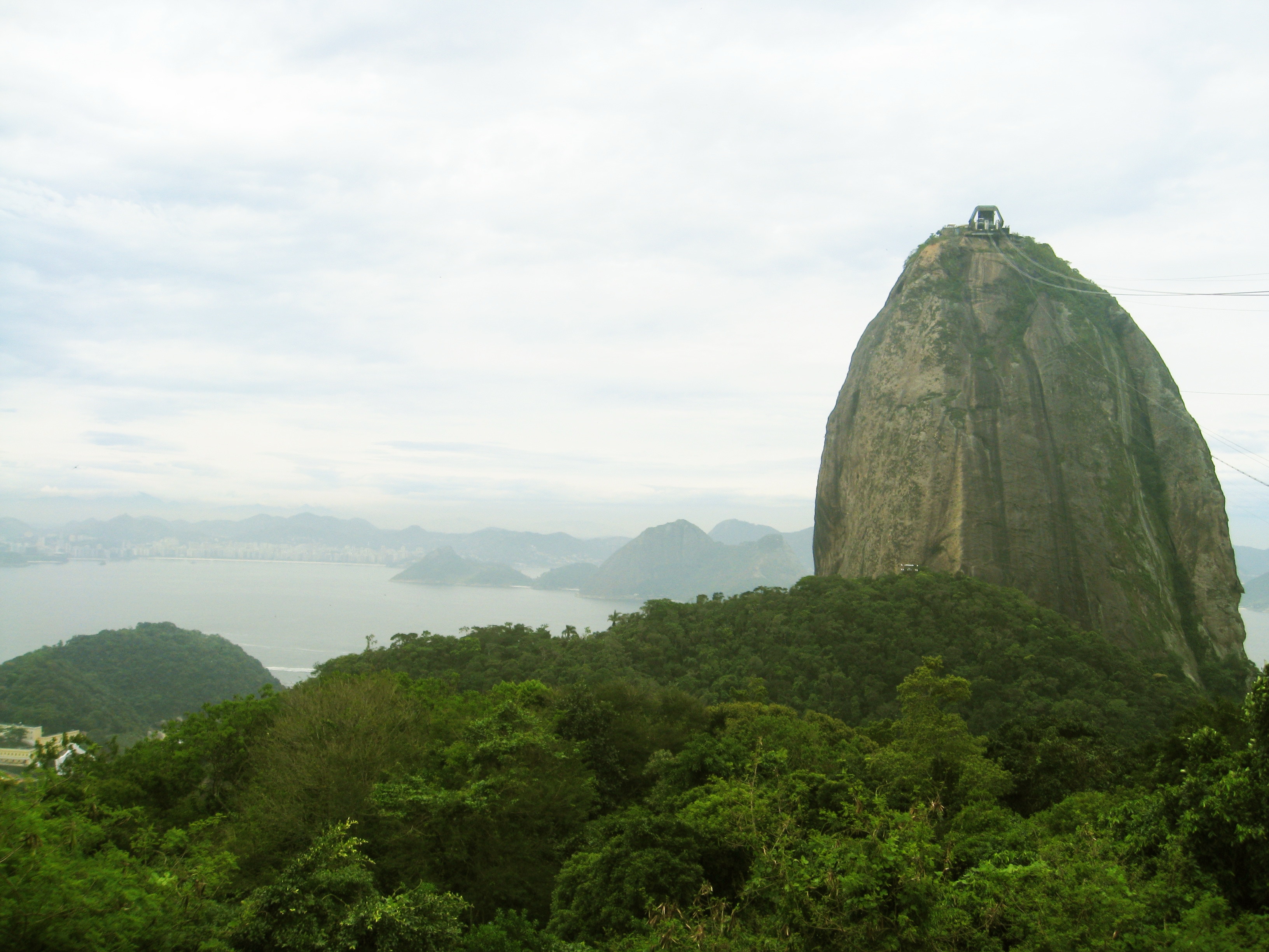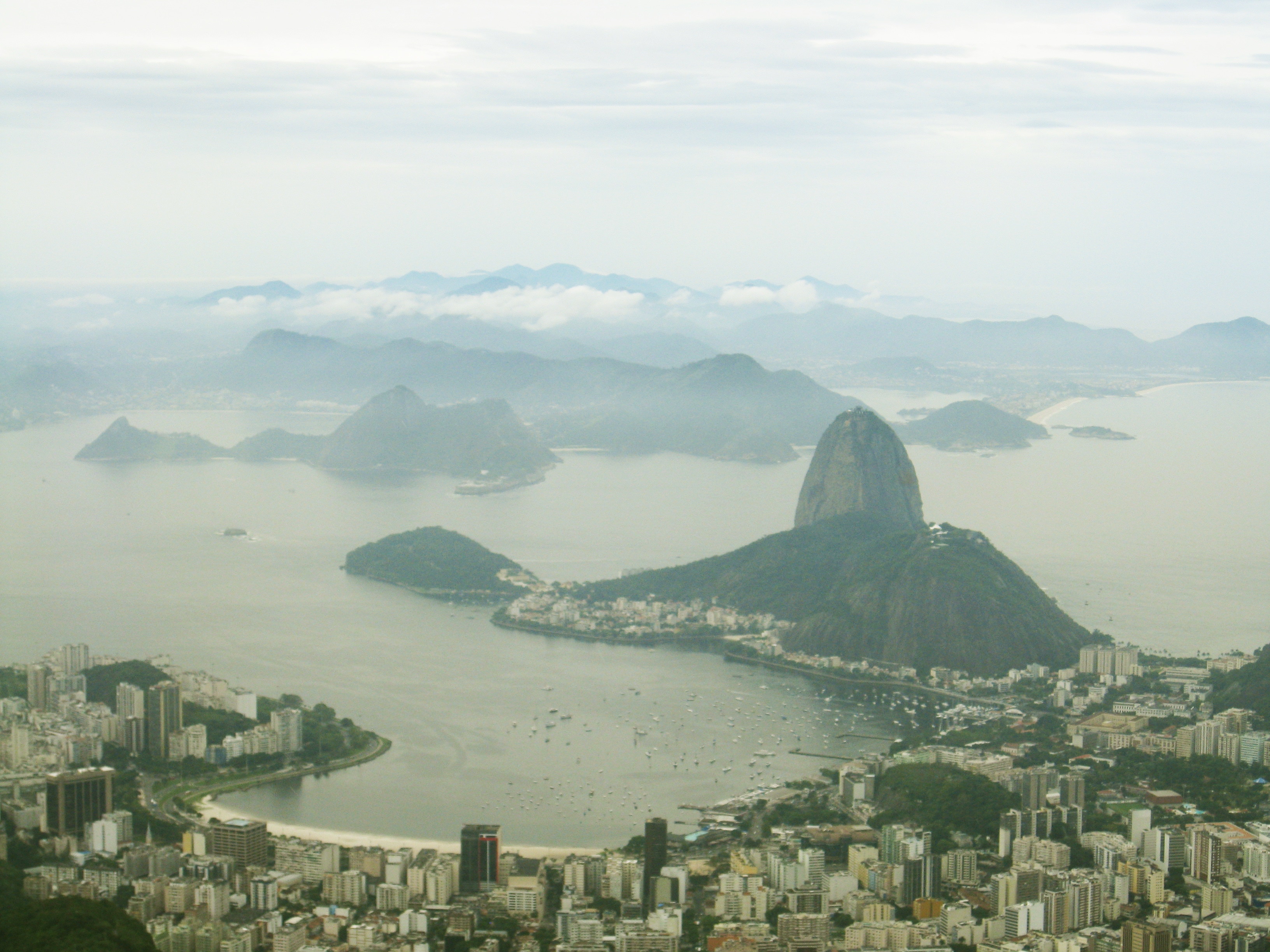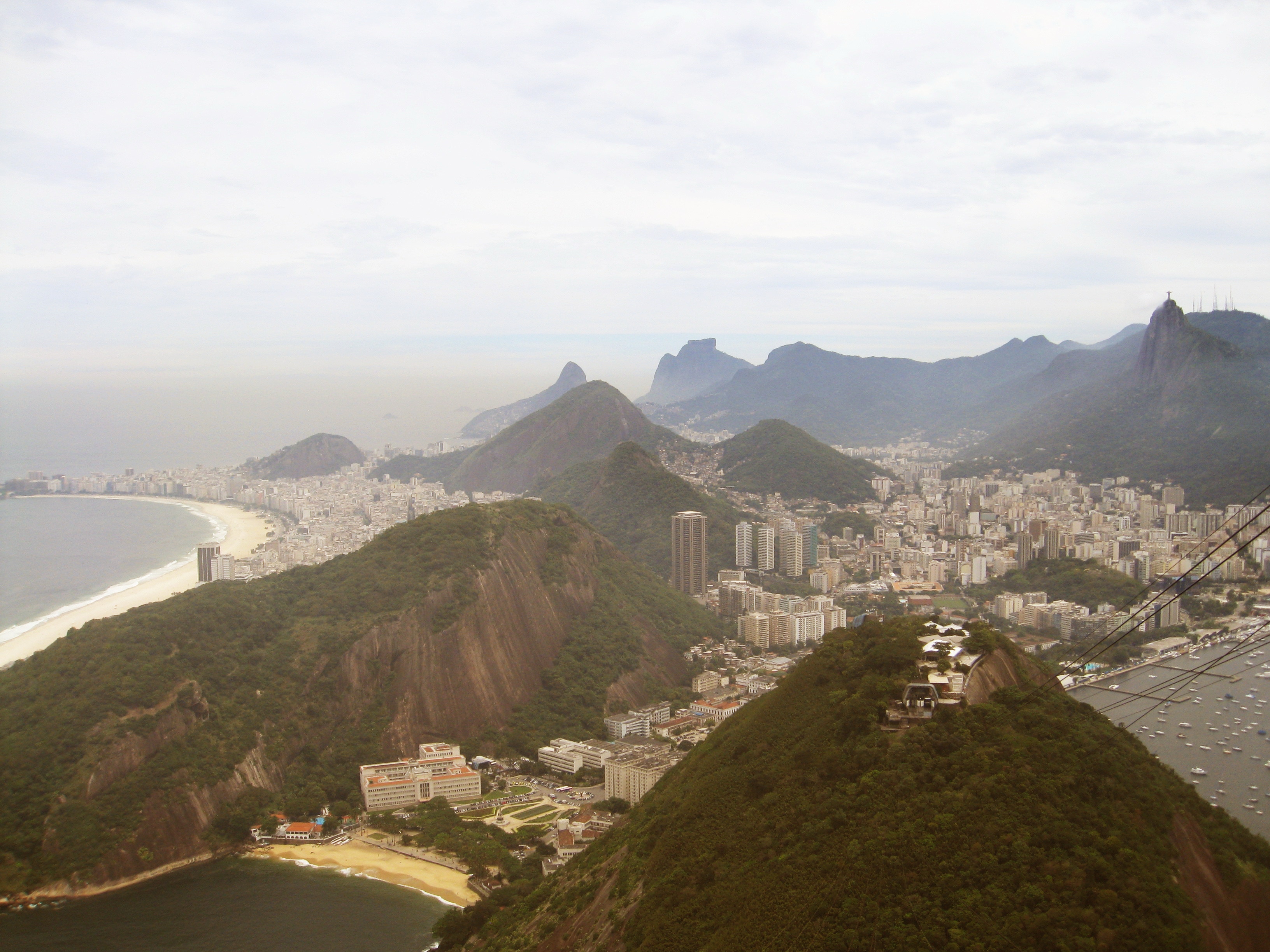 Copacabana Beach with Sugarloaf Mountain in the distance, then closer, from a cable car