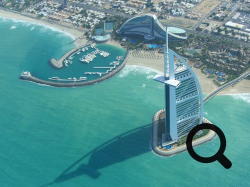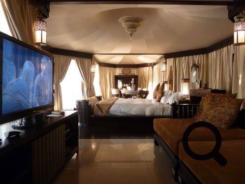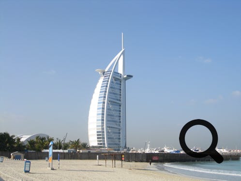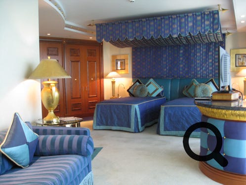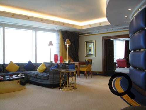 Staying in the Burj al Arab hotel, in a 350 square metre suite. All rather expensive and not really enjoyable at all