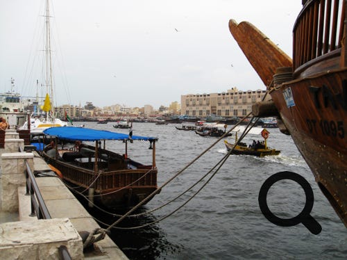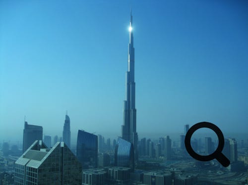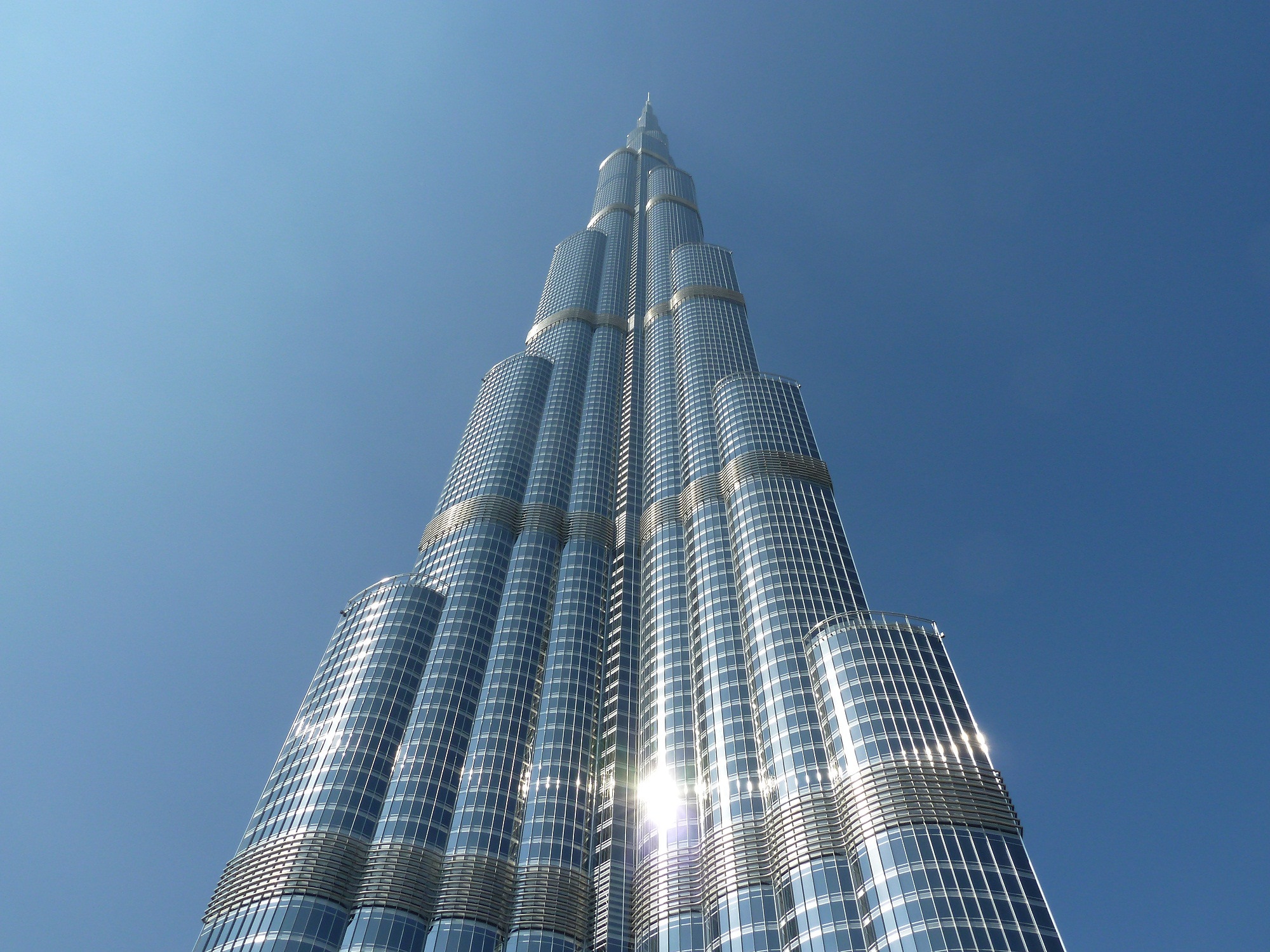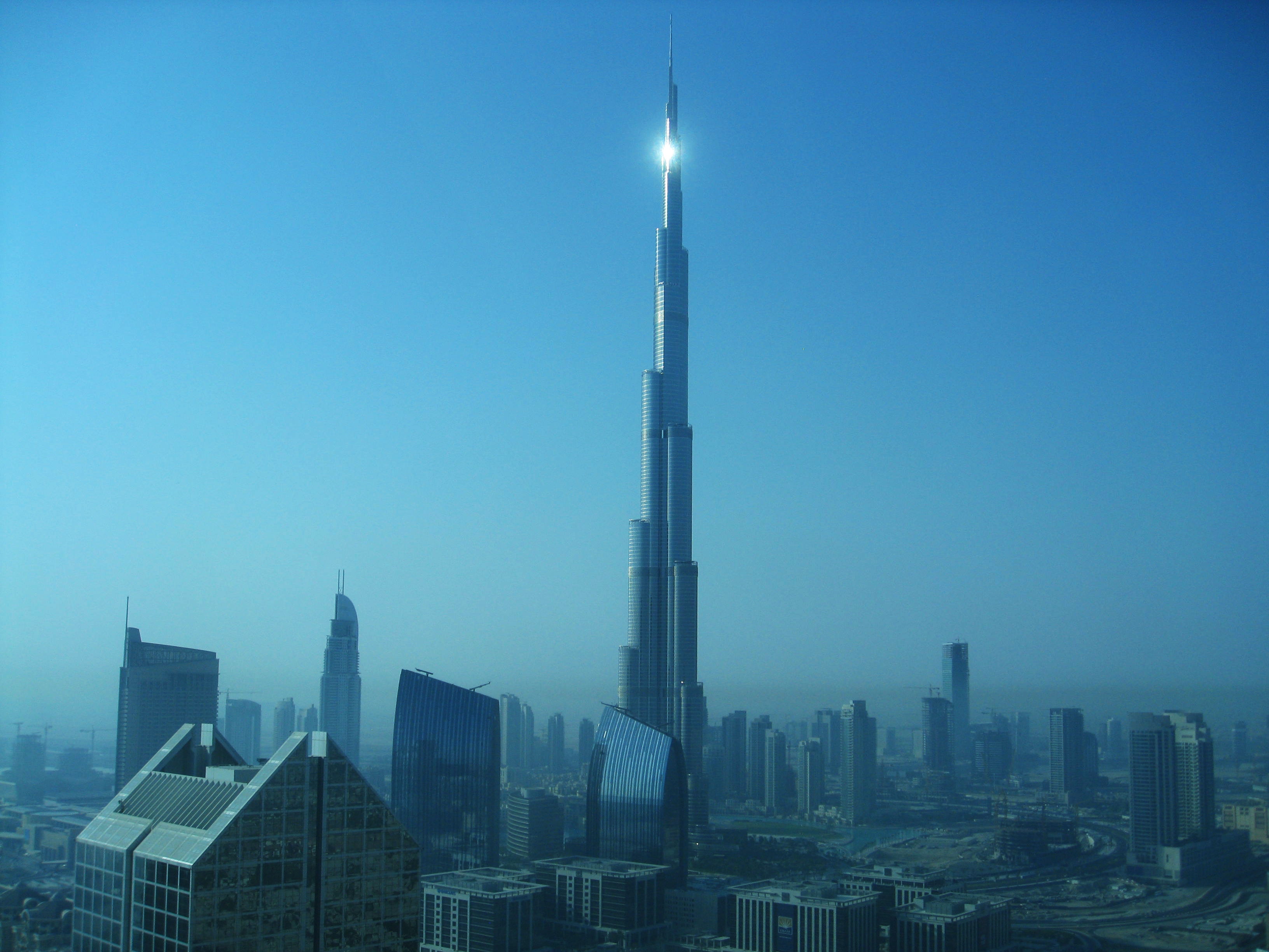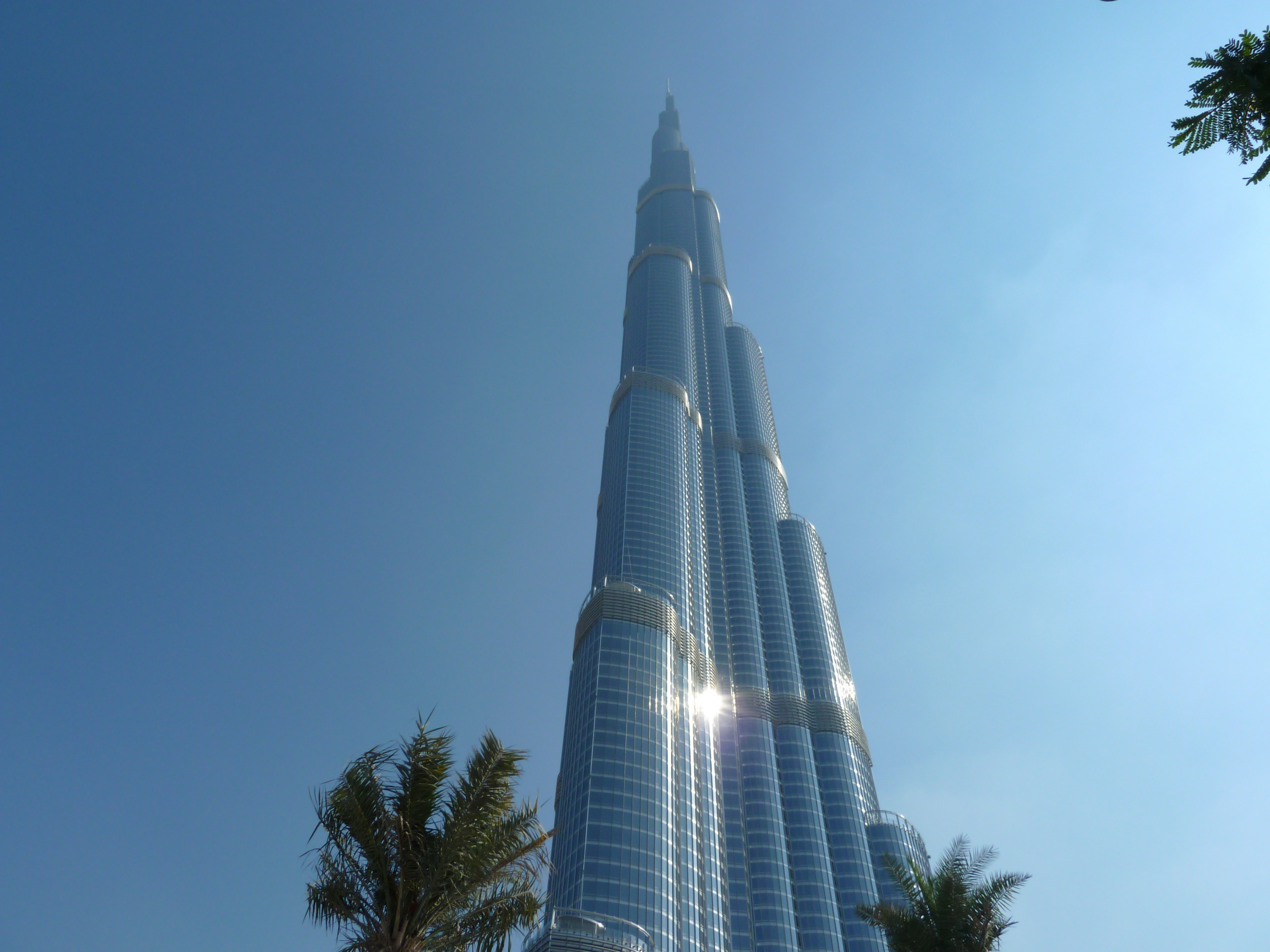 The Dubai Fountain, viewed from the Armani Hotel bar, one of many mosques, the Burj Khalifa viewed from The Address Hotel bar, and the Burj al Arab from the beach