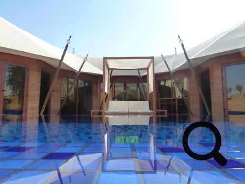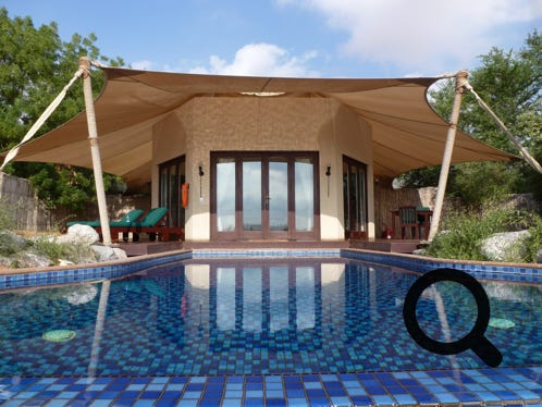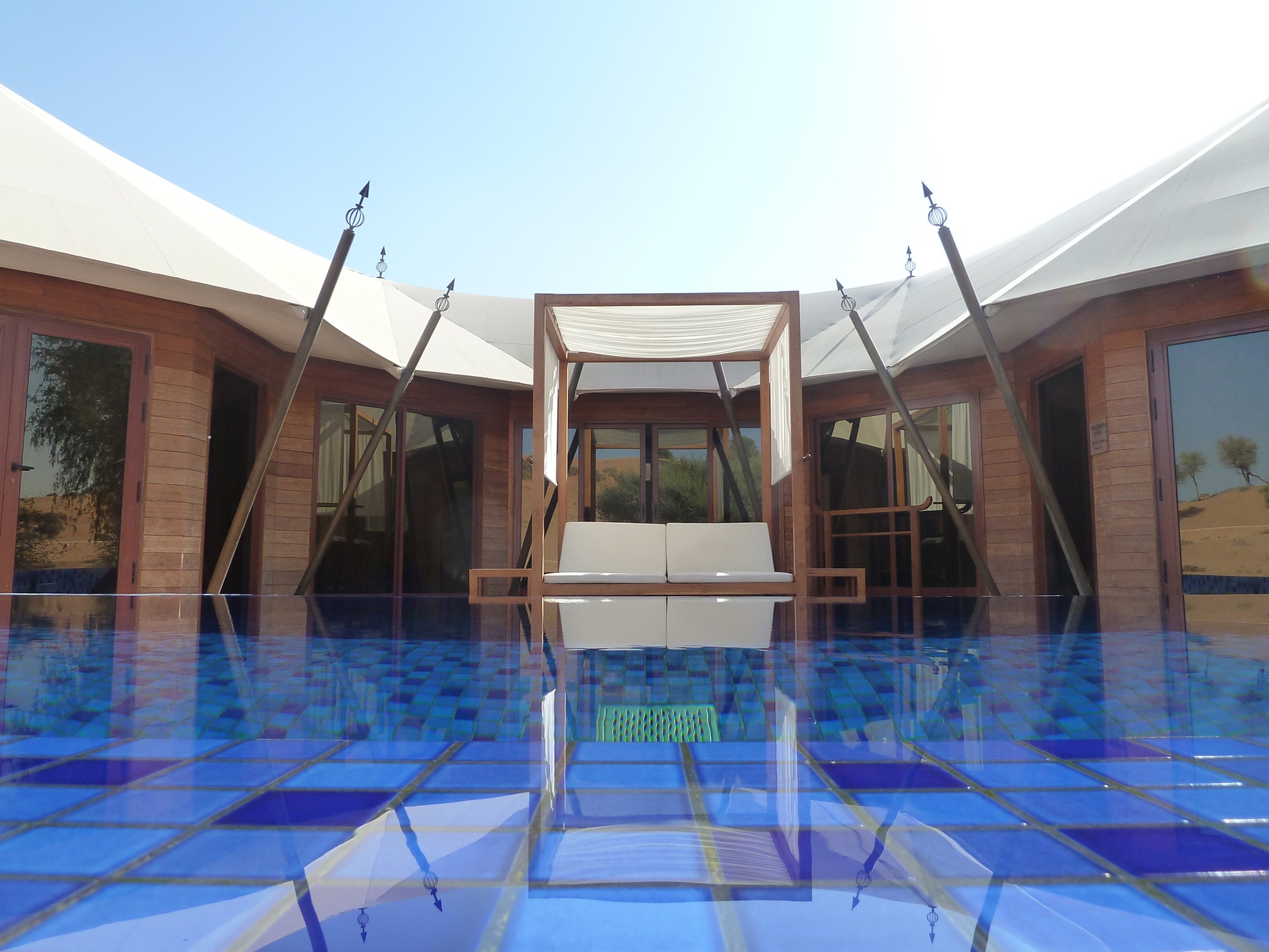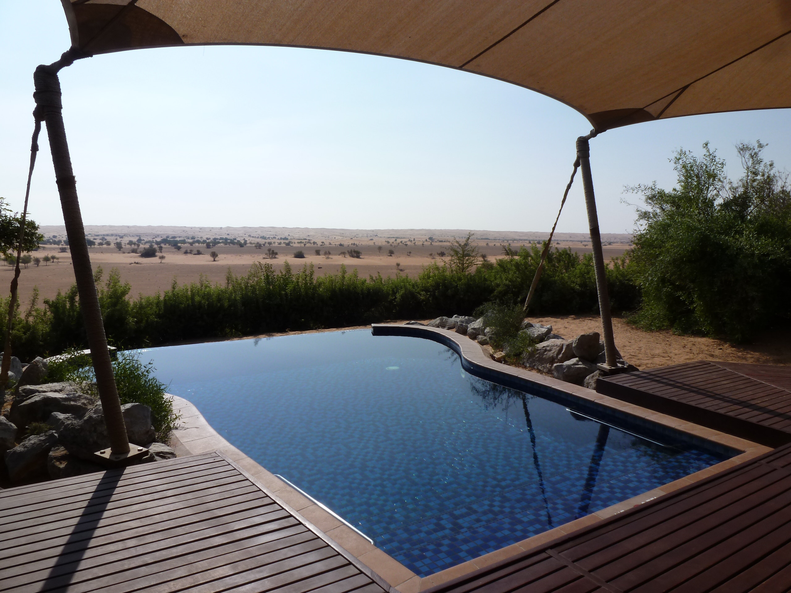 Al Maha private villa with an infinity pool and views out over the desert, where wildlife roam freely