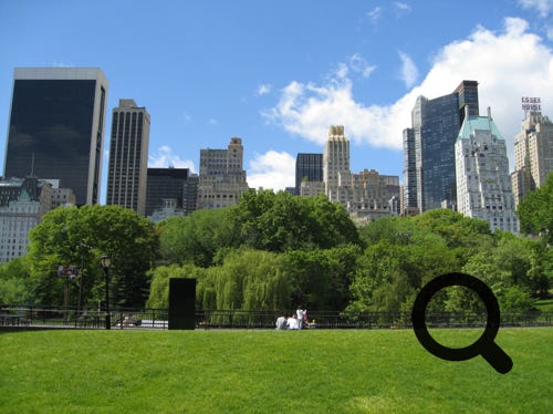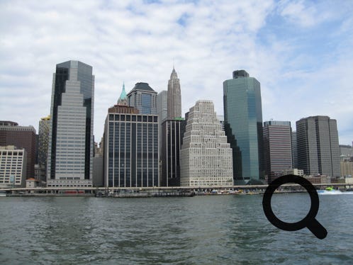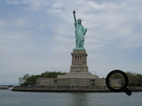 The city viewed from Central Park, The Statue of Liberty and the city from a boat trip, and Times Square