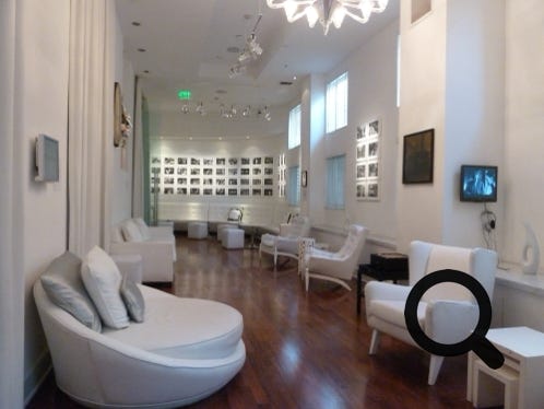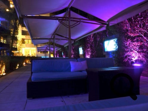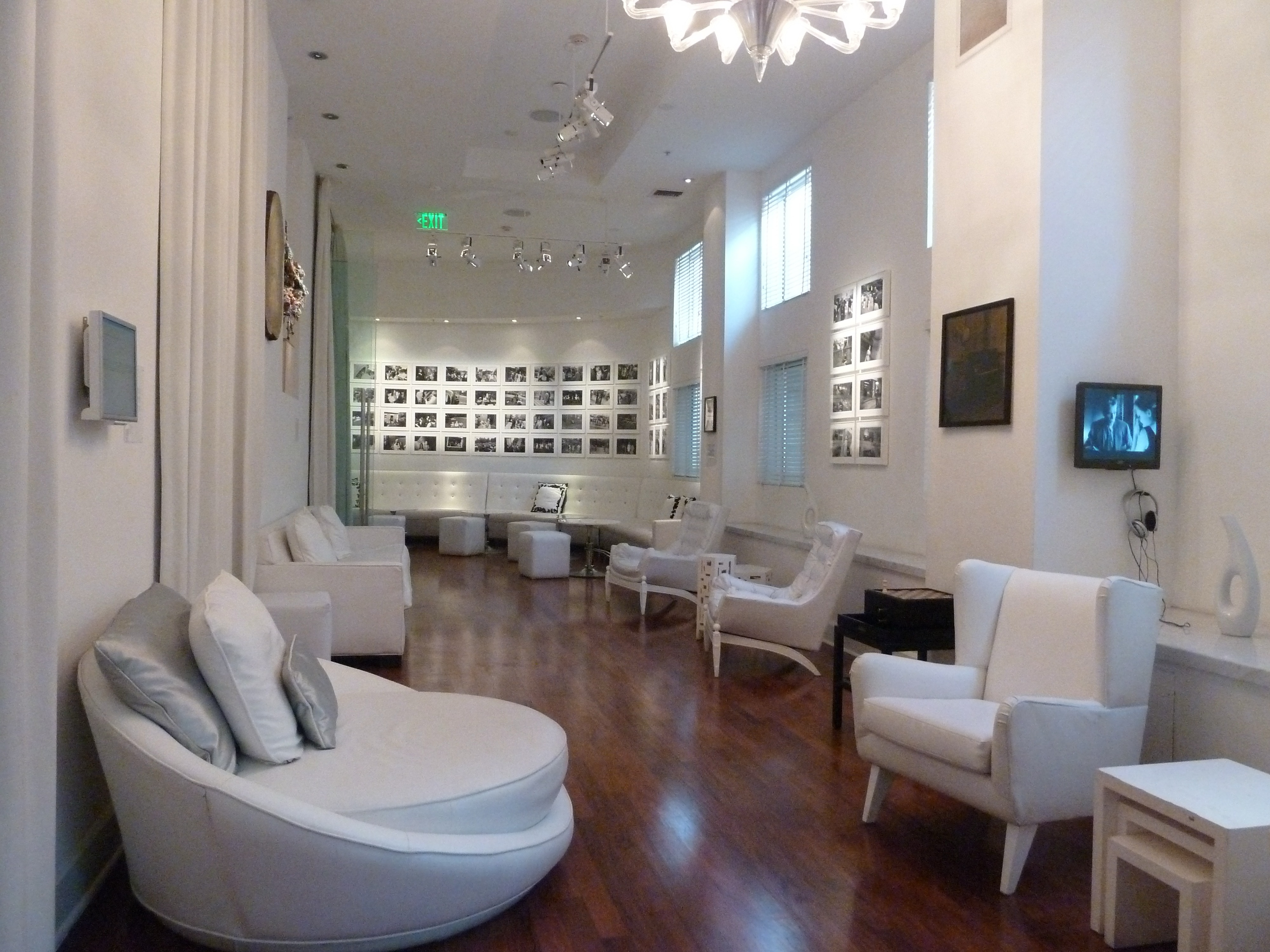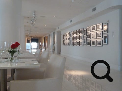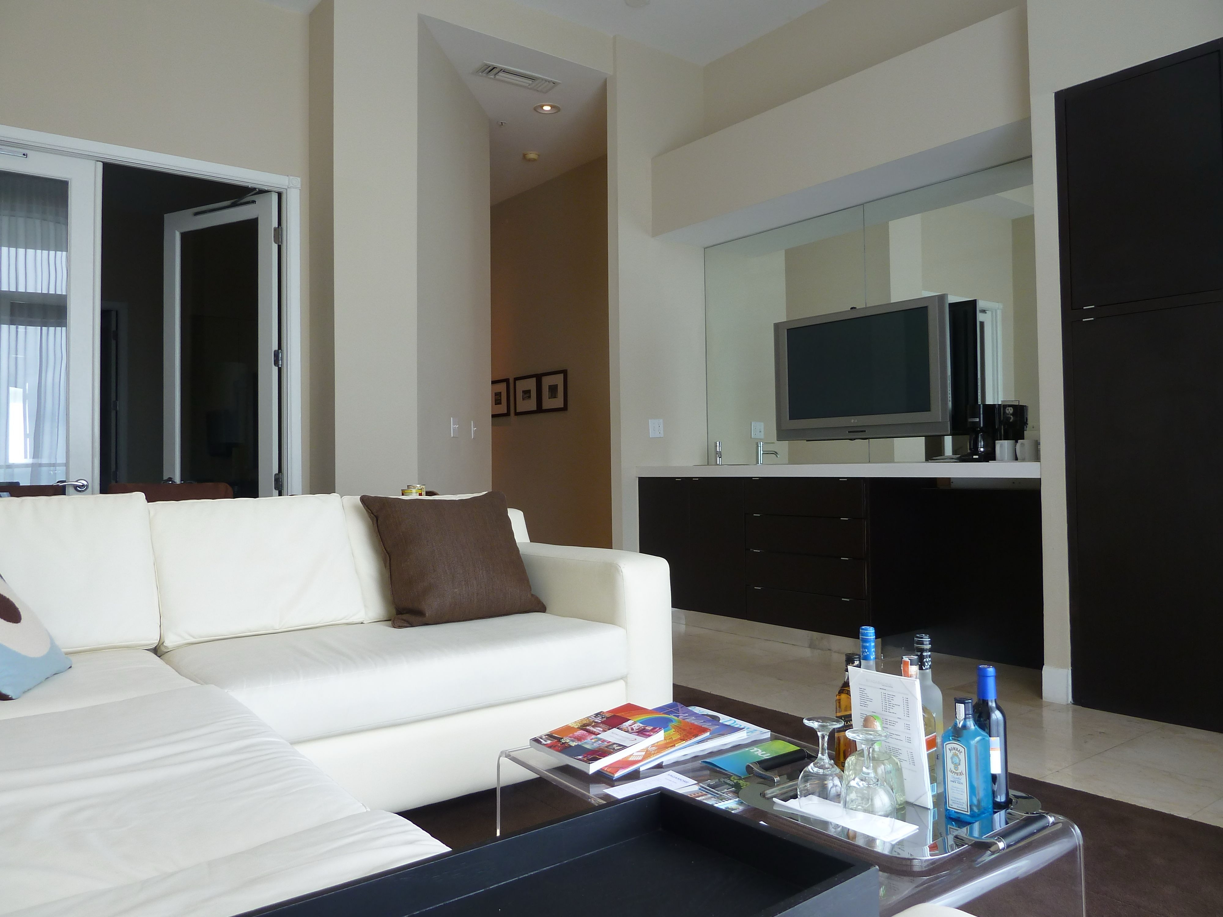 The bar area of the Sagamore Hotel, Miami, part of the ocean-view suite, then two pictures of the lounge and restaurant areas